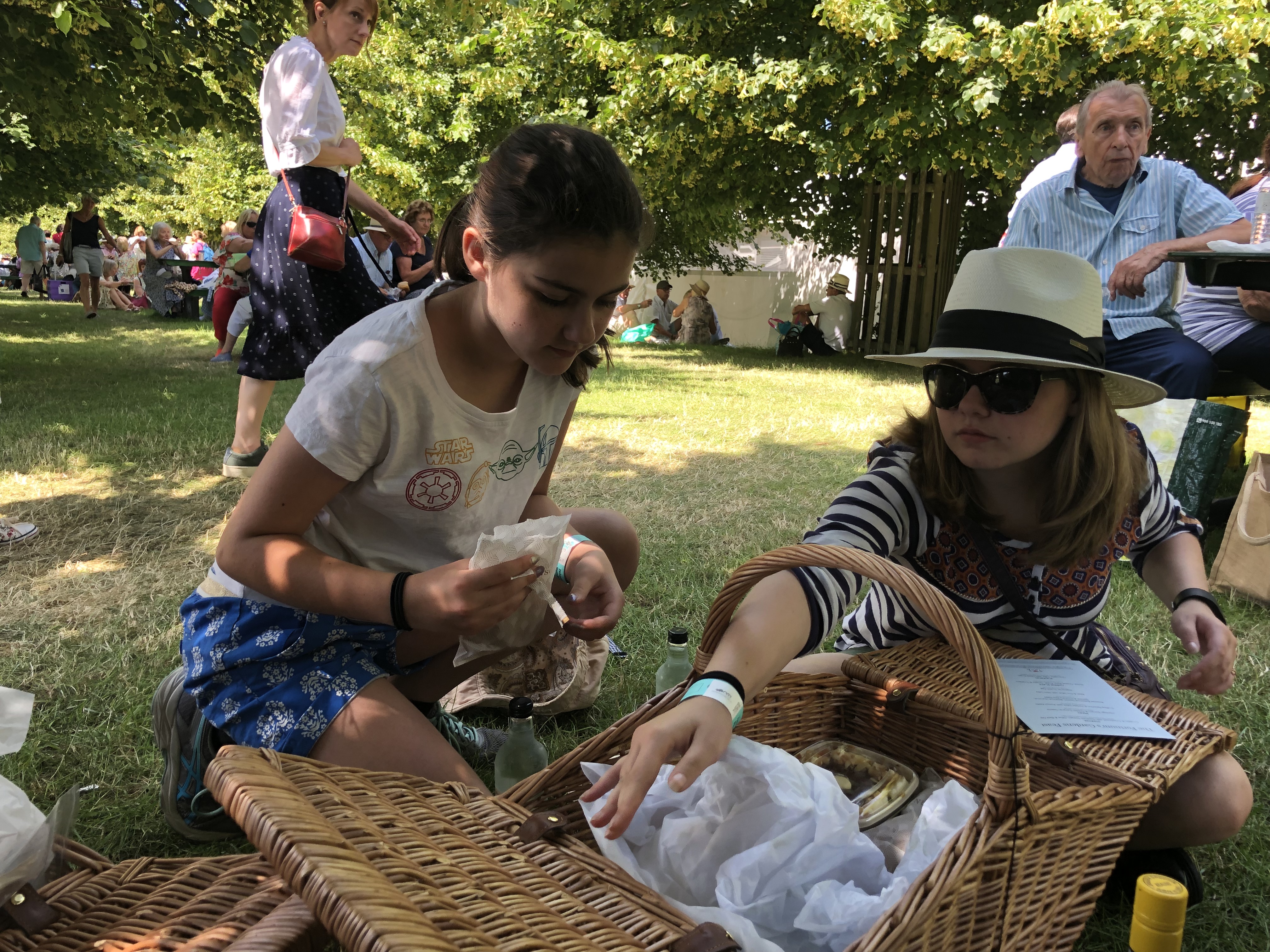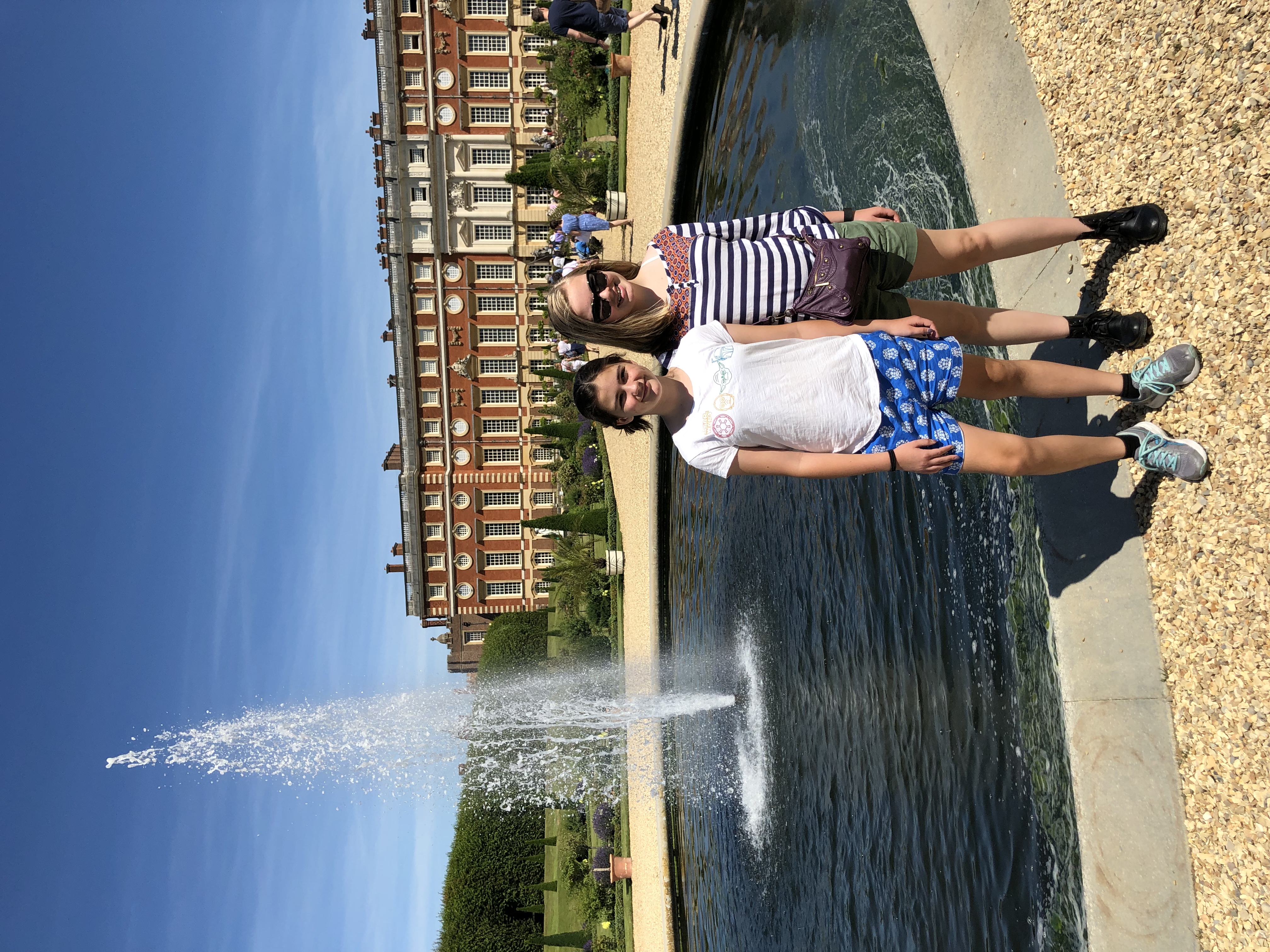 This had lots of potential but the reality was, sadly, quite frustrating. It was insanely crowded. We arrived exhausted from the long, hot train ride, then battled the crowds to purchase sun hats and find our picnic basket. We recovered a bit after our riverside feast and decided to explore Hampton Court Palace rather than continue w the garden show. CJ and David enjoyed some educational talks and demos while we admired then Tudor kitchens and learned more about the dark history of the palace.