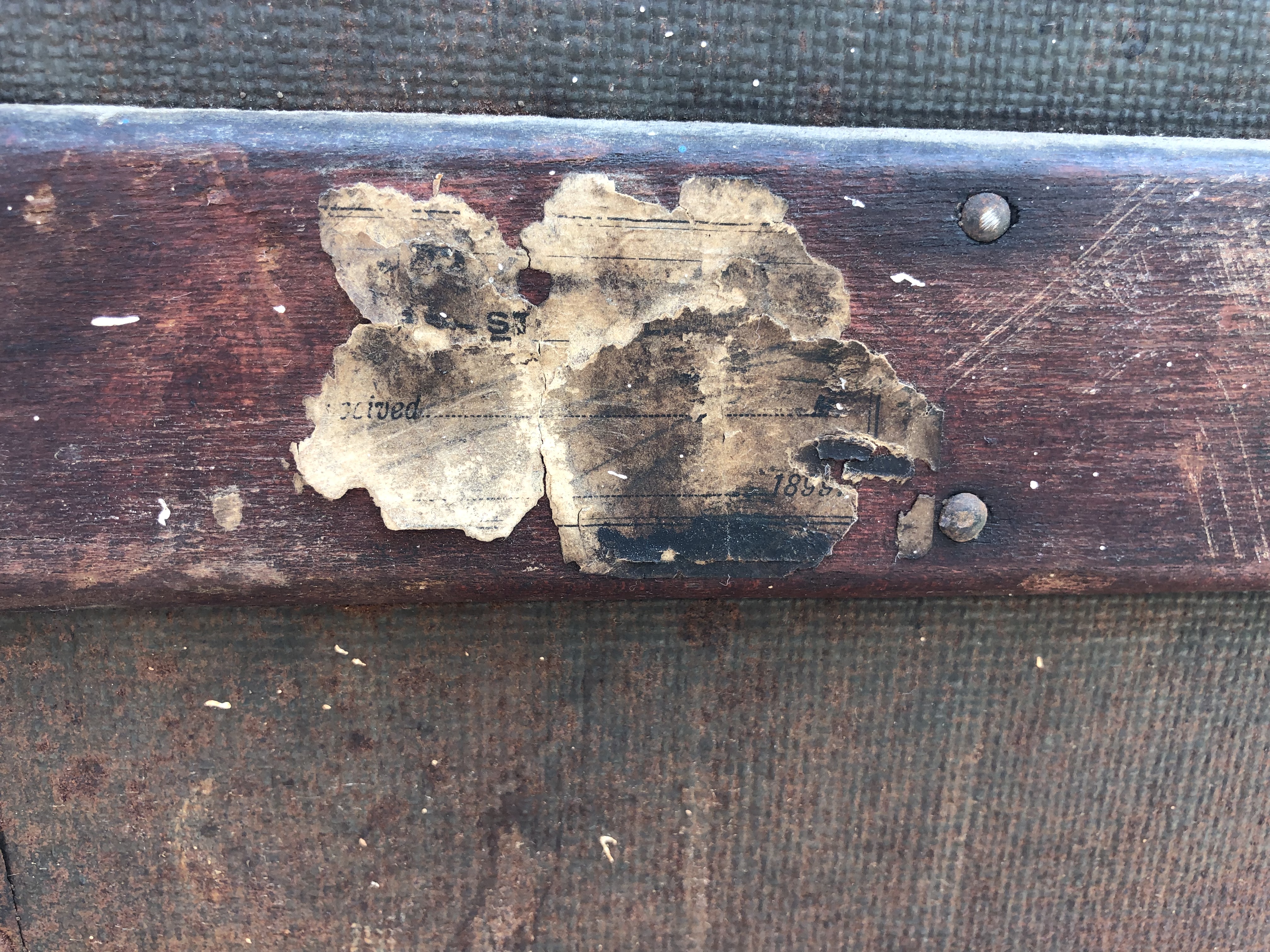 And here is the project I’ve been working on- Lupin’s trunk. It had an old sticker on it with 1899 in the corner, maybe a travel date. Here are some “before” photos. It was made by Duluth Trunk Co. which opened in 1890.