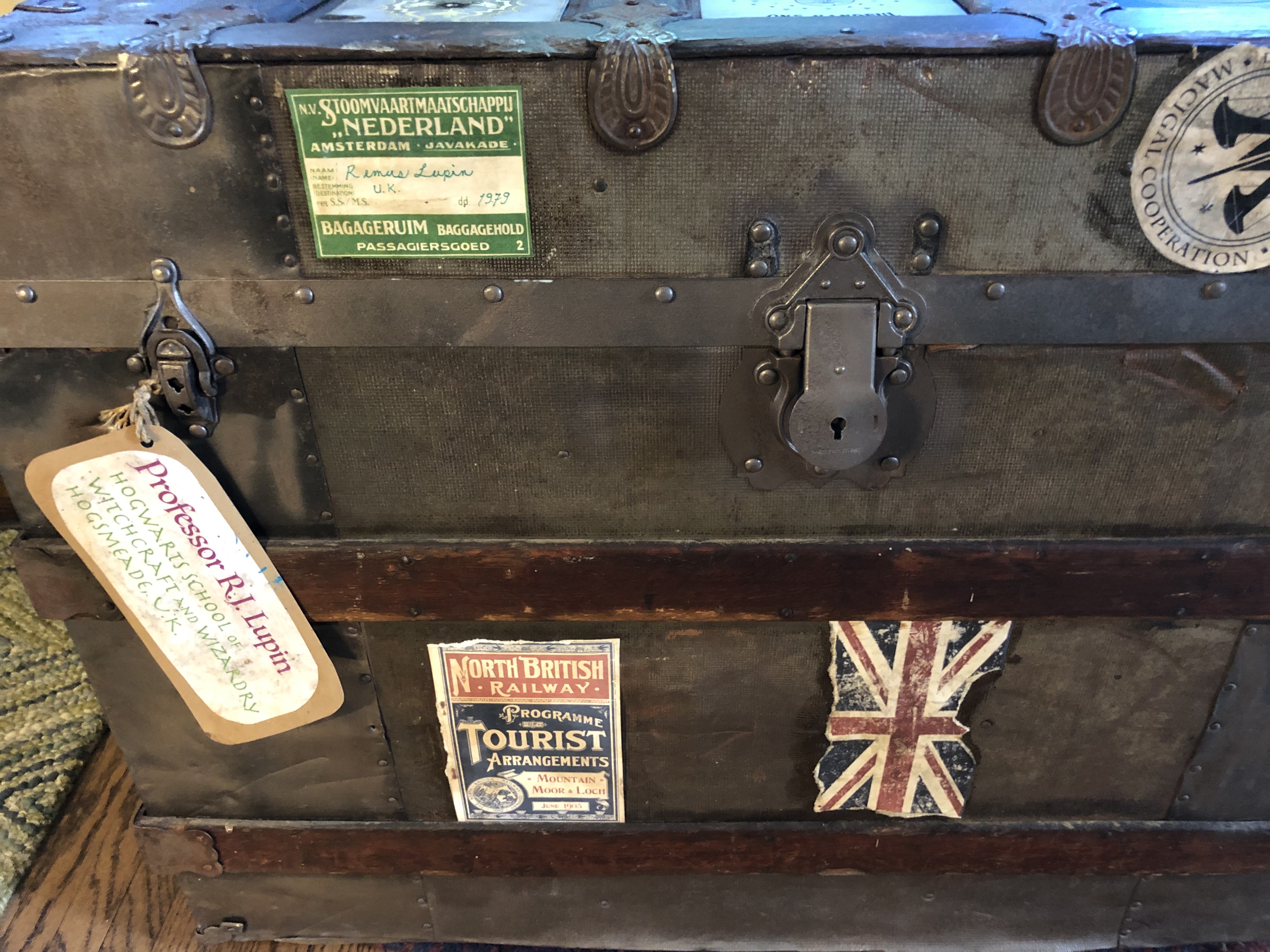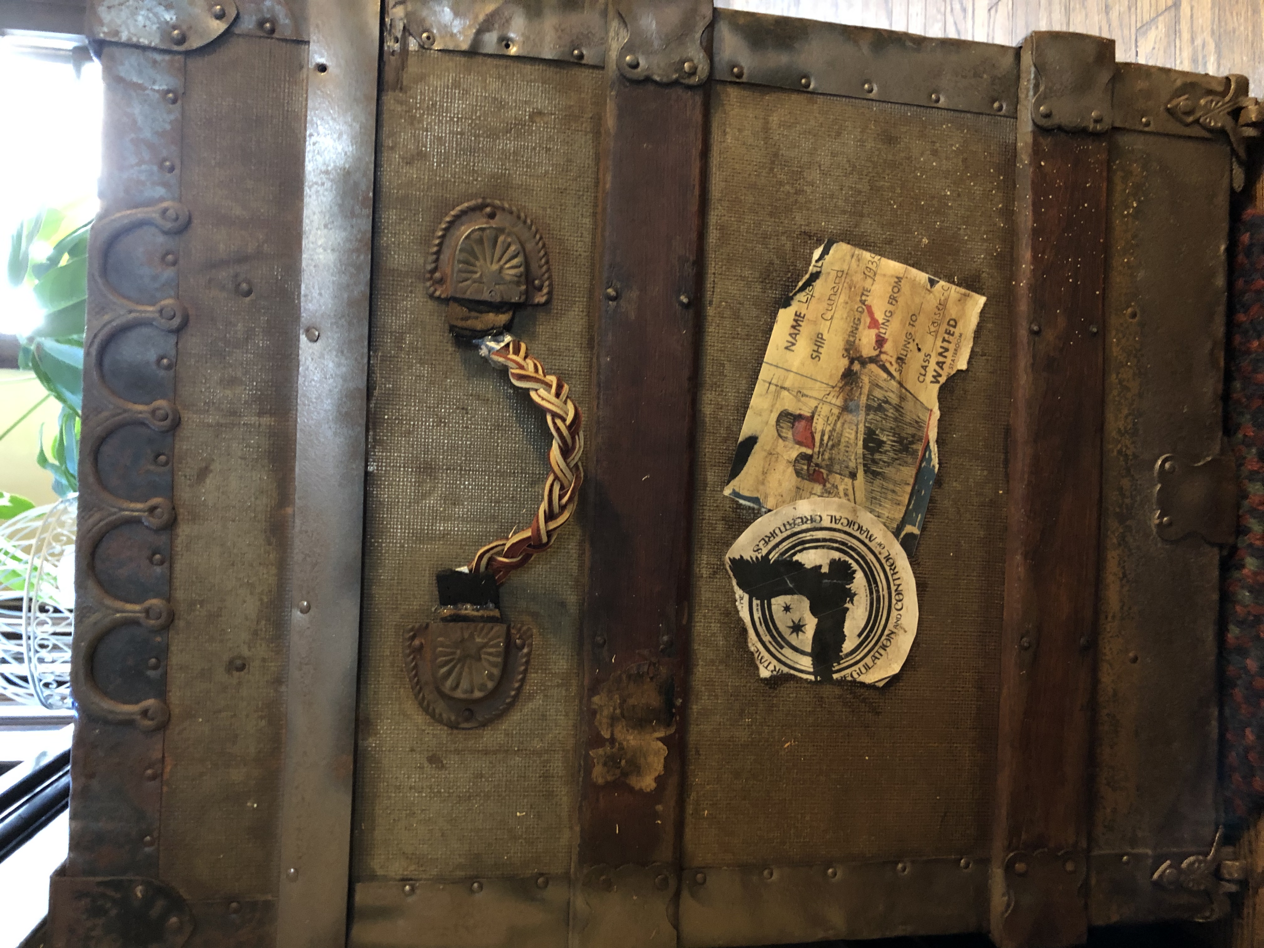 After some cleaning, rust removal, wood wax, metal paint, and a few extra rivets, which Bryant used to fix some sharp edges, the trunk was ready to decorate. It would even be good for storage. I might have to keep it!