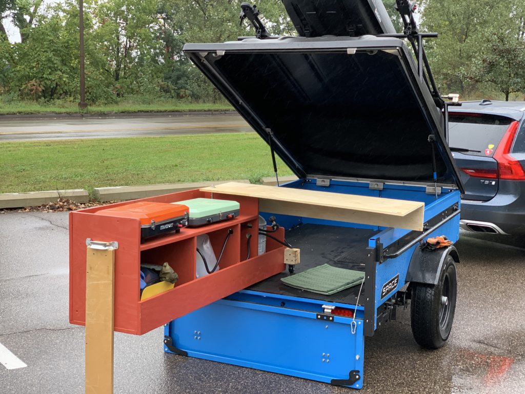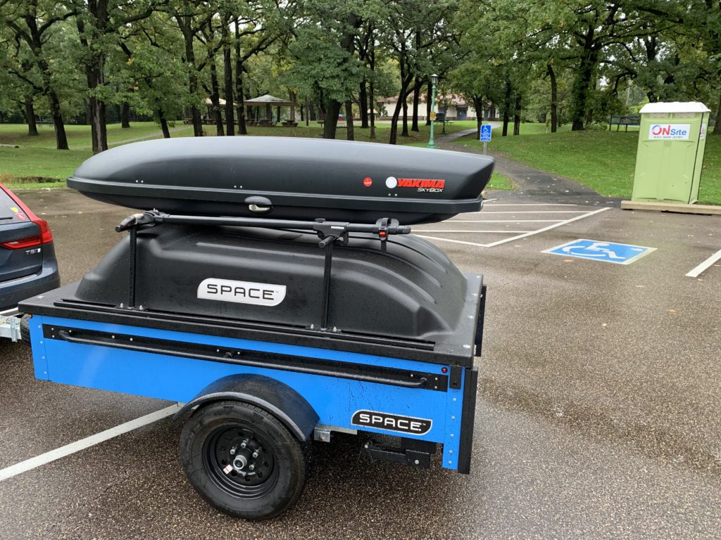I recently picked up a Space Trailer and tricked it out with side rails, cross-bars, spare tire, and stabilizer jacks. I put some bike racks on it and the Yakima Skybox that I usually put on the car. Tons of space, rides nice, and no cross-bar noise on the roof of the car!