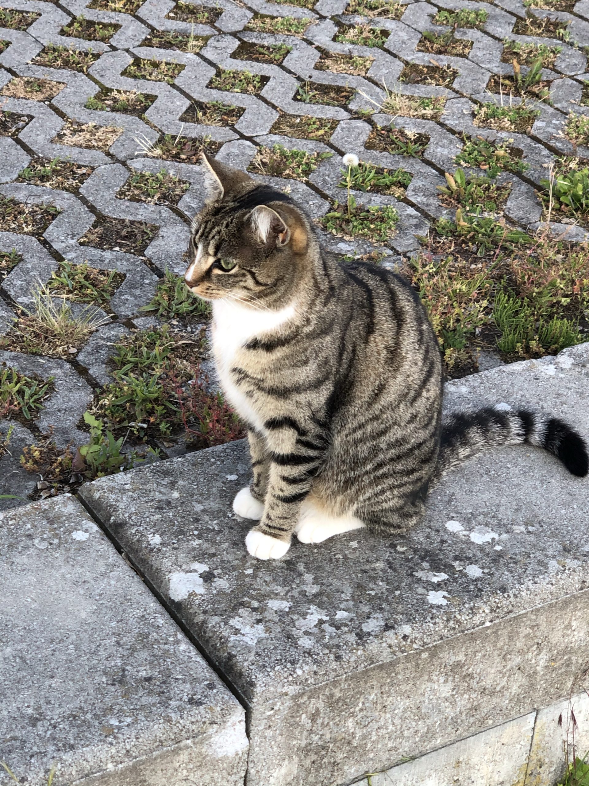 And this little beauty sits on the walk along the bike path. She has a lovely cream- colored bib, paws and stripe on her nose- So pretty!