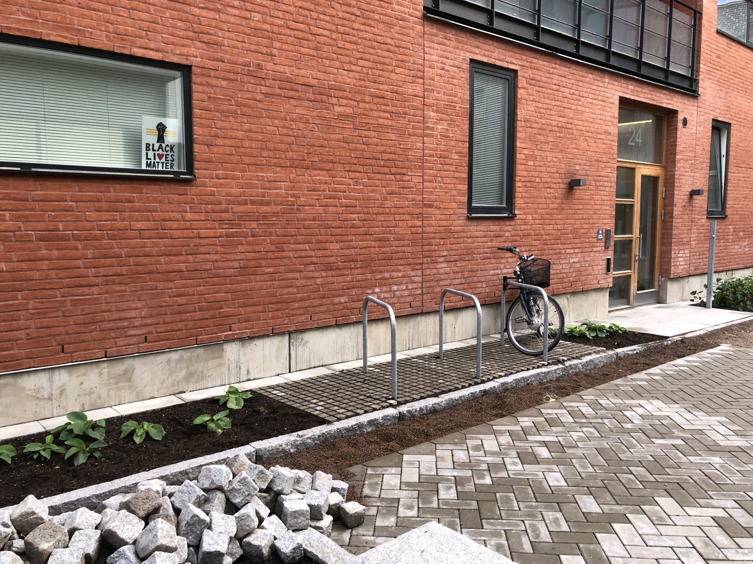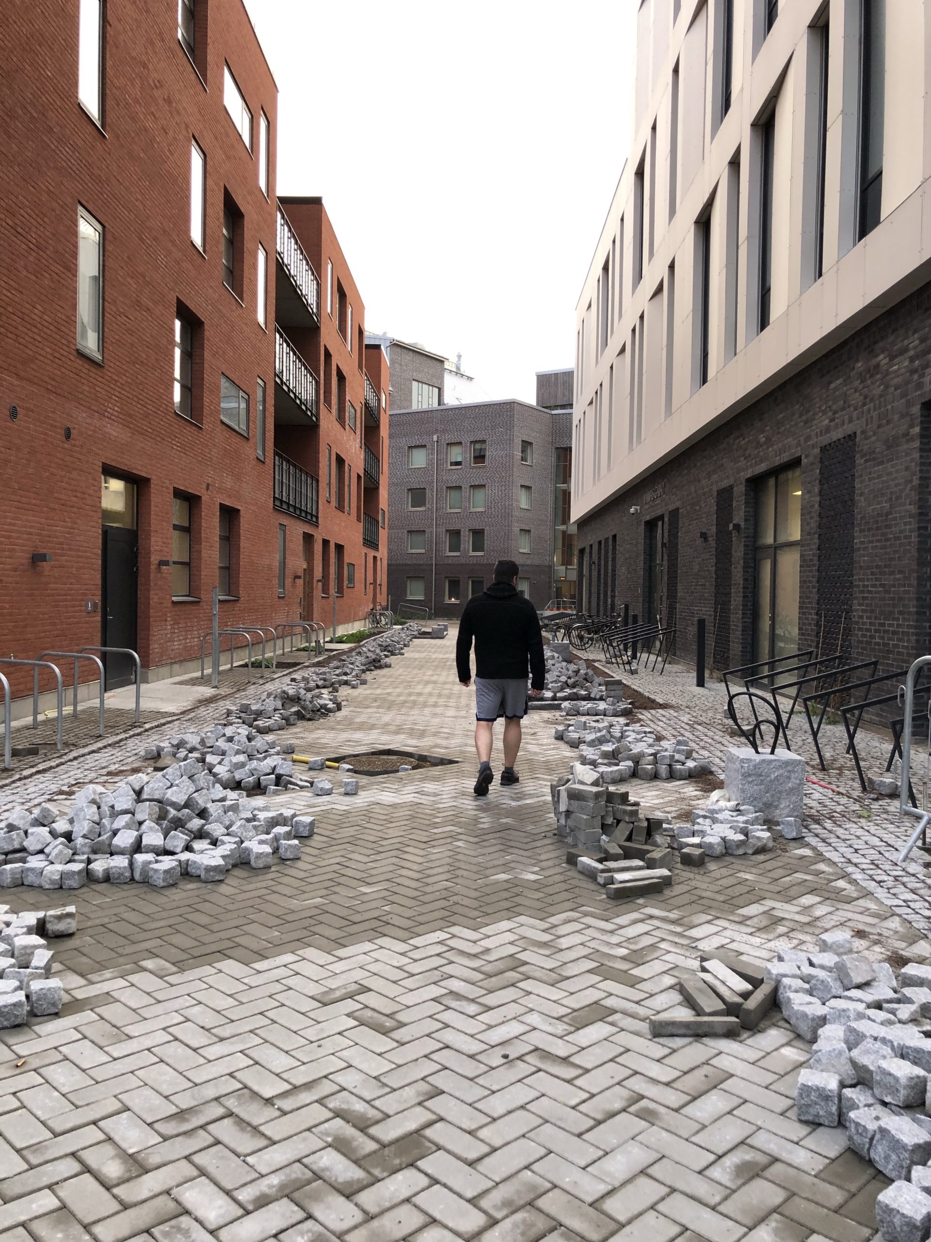 This is our building entrance and our bedroom windows. We left them open during work hours one day and found our beds and everything covered with a layer of grit- yuck! They’ve been working nonstop since we arrived, digging massive holes for pipes and stuff under the road. Now they’re nearly done with cutting and laying pavers, a loud, messy job right outside our windows on both sides of the building. Luckily we can escape to the rural part of Hyllie with just a short walk.