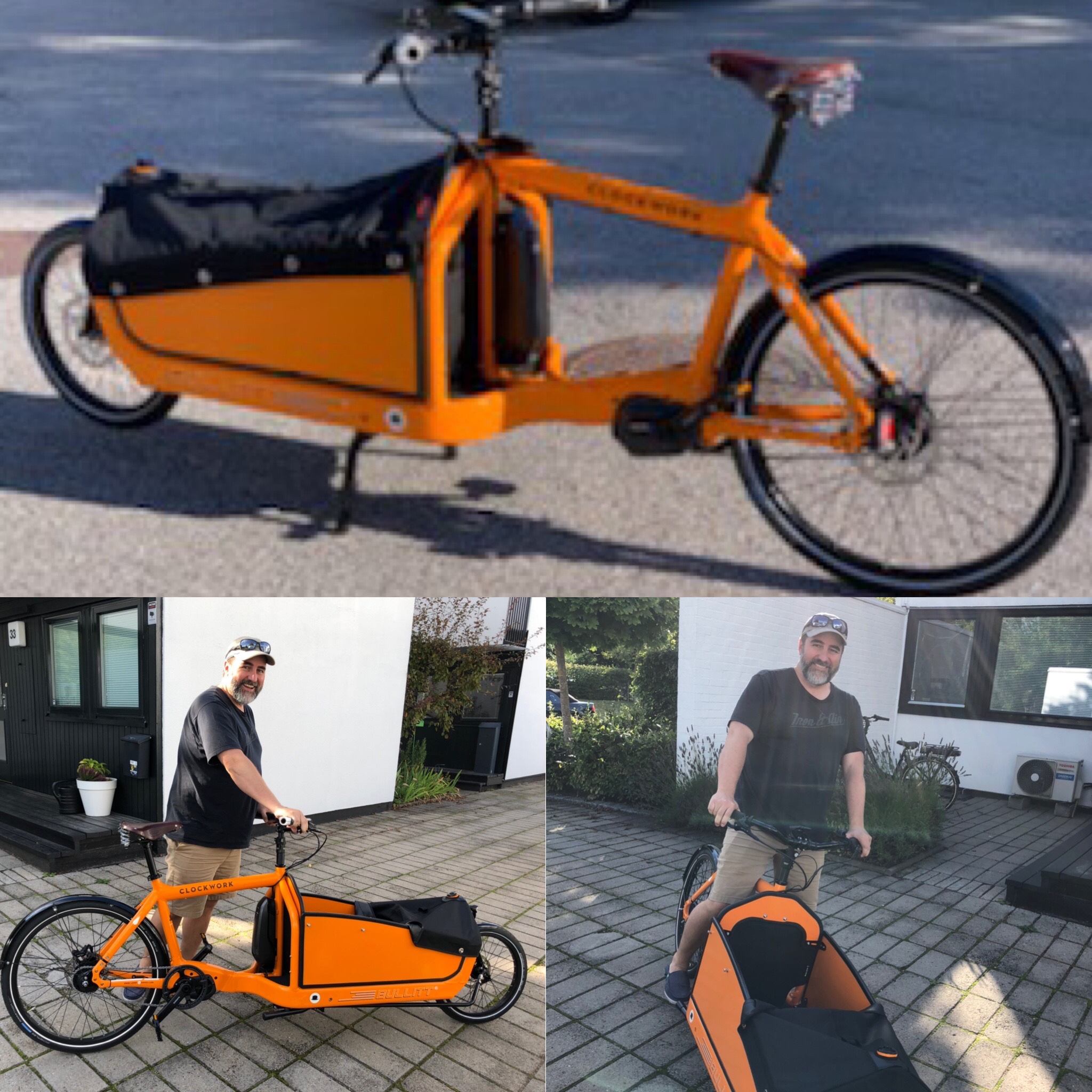 The cargo bike arrived just in time for Bryant’s birthday. He’s very happy with the color and its performance so far!