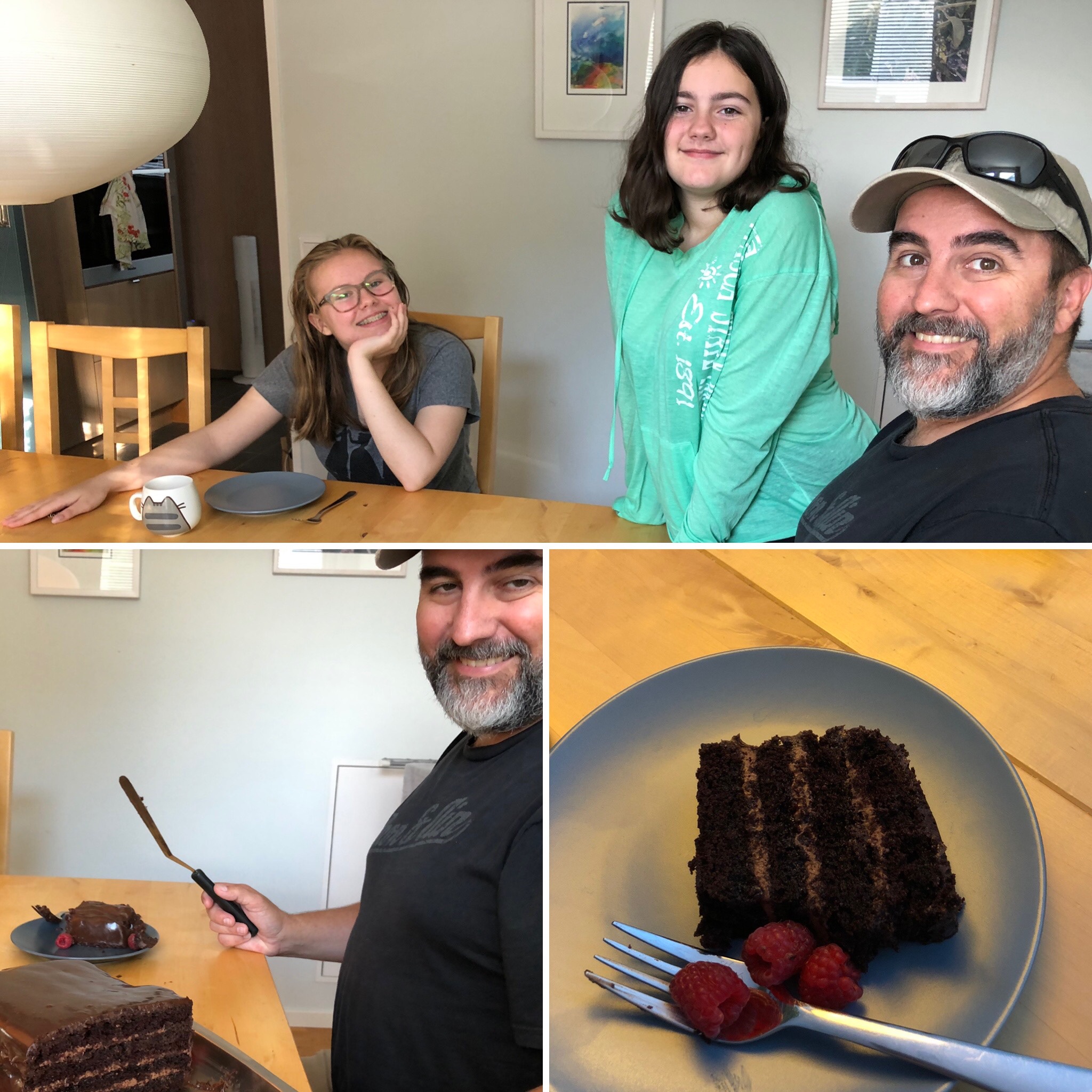 The dark chocolate raspberry layer cake from Lily’s birthday was a favorite, and making Bryant’s was a bit easier since I’d already found all the ingredients. I’m getting used to the oven and other differences and that also helps. I think it was improved by cutting some sugar.
