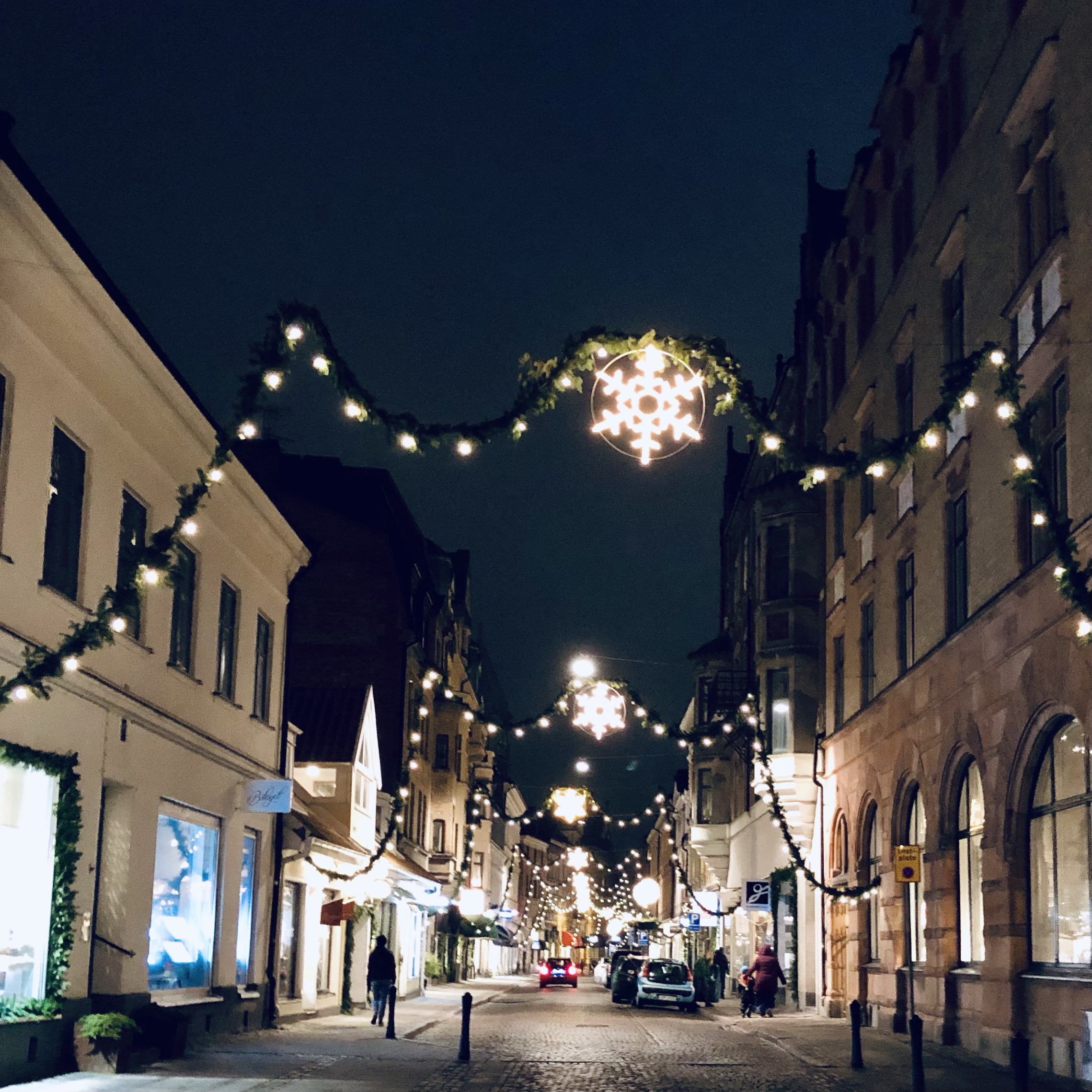 The lights are making it more pleasant to get out for a walk. This is Bantorget, near the train station and Grand Hotel. Lily is looking forward to trying out the mini skating rink which is open through February this year. Unfortunately the main rink is closed for COVID.