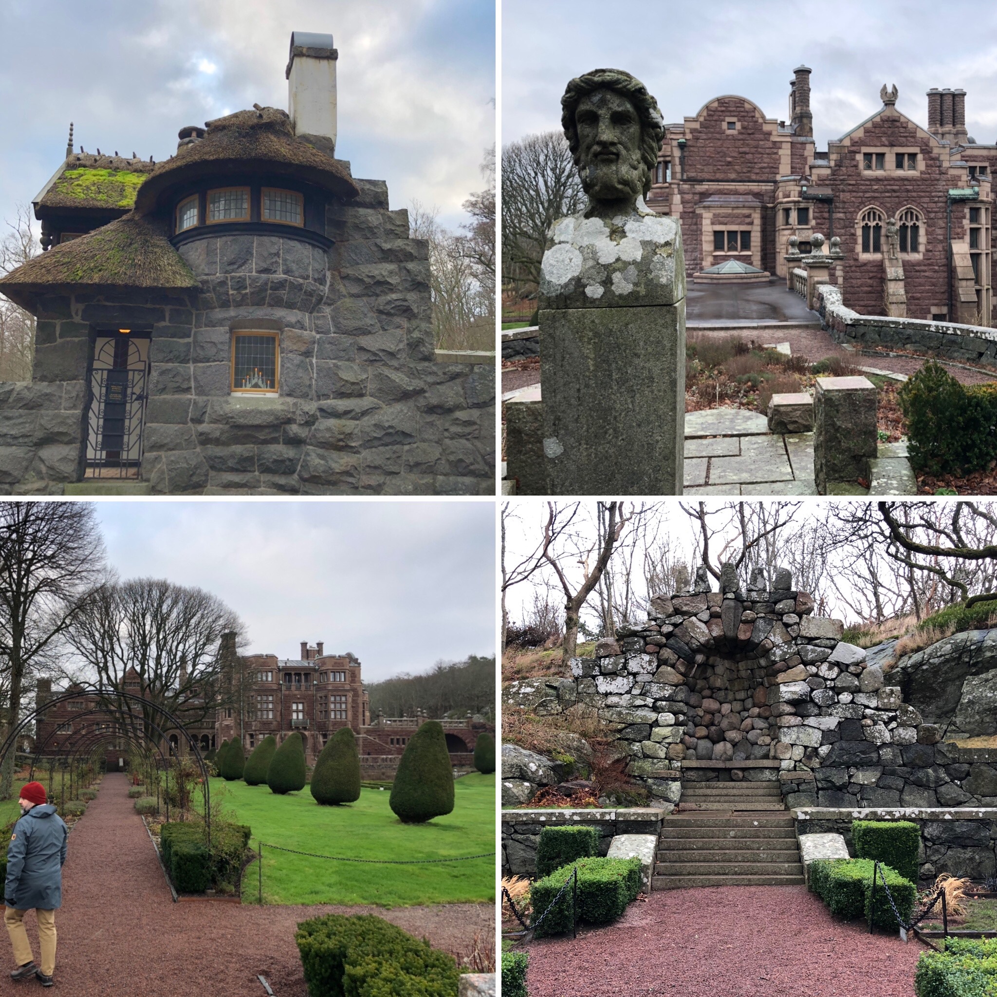 The next day we walked around the estate, which was filled with amazing naturalistic landscaping that felt natural but featured convenient hardscape. Benches, steps, statues and interesting rock formations led us to the best vistas and sheltered nooks. It was windy and muddy in the off season but wildly beautiful.