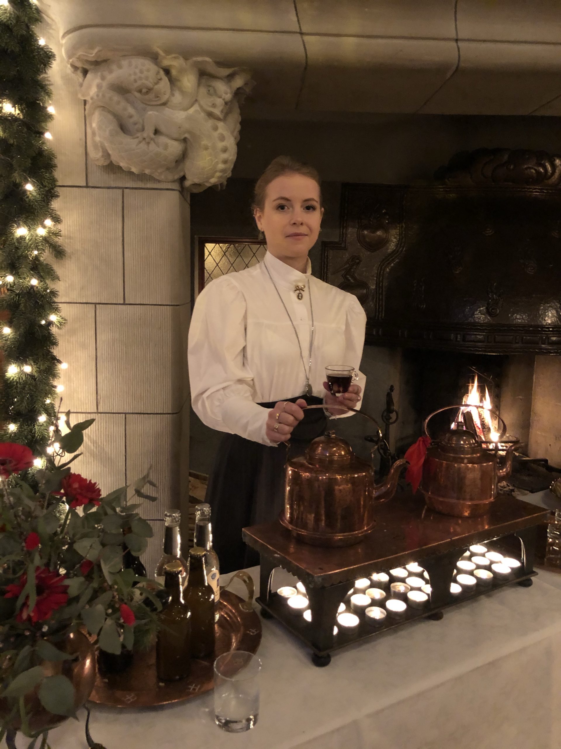 After a few anxious minutes waiting outside, not quite sure if we were in the right place, we great doors opened and we were treated to warm glögg, live music and a self guided tour of the mansion. It featured a room built to accommodate a very large painting the owners had commissioned, which ended up being too big for their home in Gothenburg.