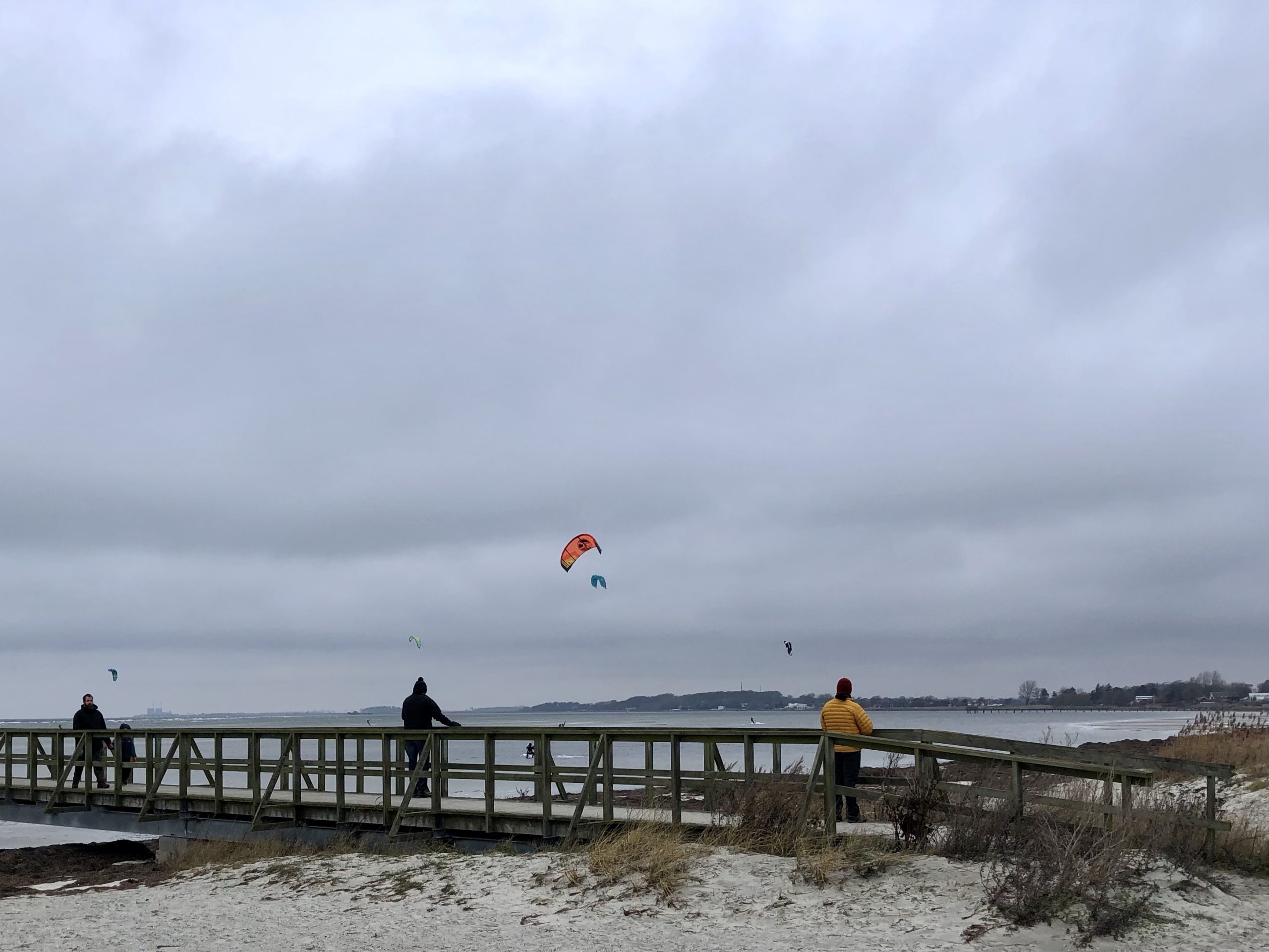 Bryant will likely add some of his photos. It was so cold that I didn’t have my phone out for long! We walked out on the pier where we had an excellent view of the kite surfing. I was amazed at their speed and how high they could soar above the water.