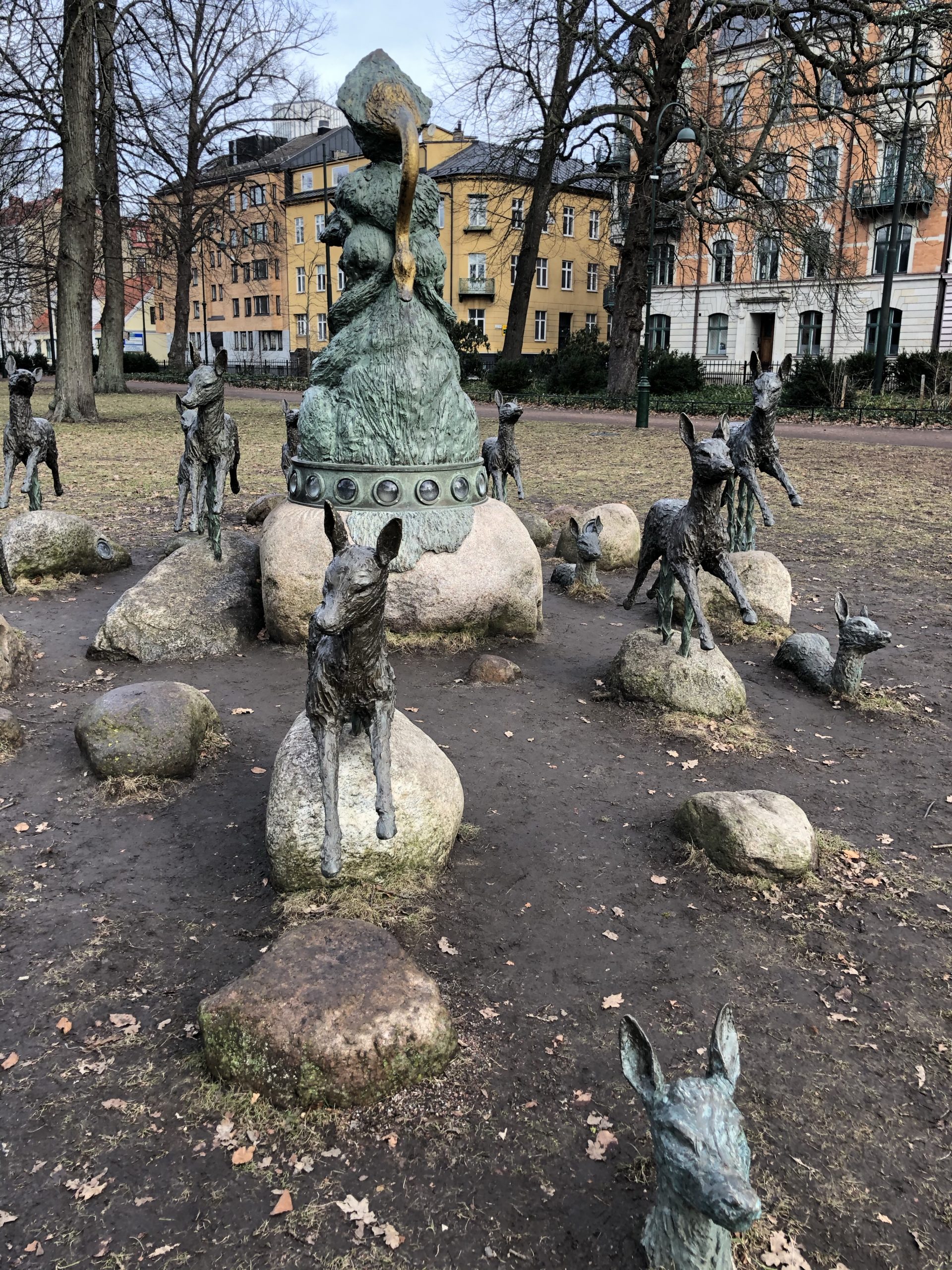 “Diana” sculpture (meant to look magical by moonlight) Some trees remain in Kungsparken from 1872 when it became the first public park in Malmö