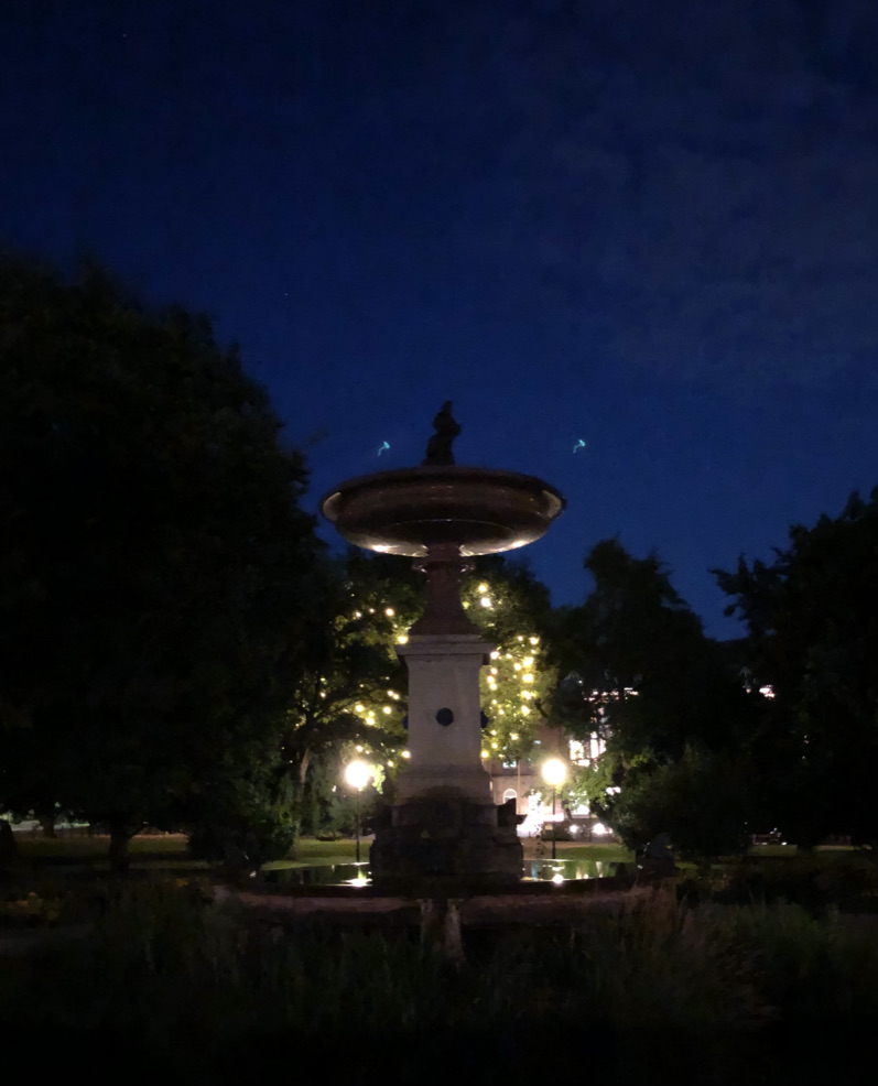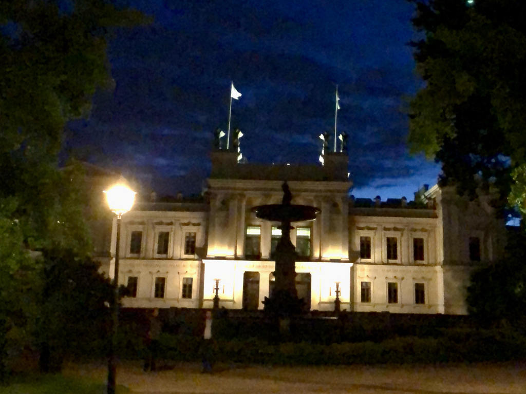 After dinner we enjoyed Lund by night. The town was lively, with a festive vibe as weddings and social events are being held outdoors, and students begin to move back. Programs at the University are partly on-line, partly in-person so we anticipate a busier atmosphere around Lund this year. The Domkyrka is even more impressive at night, I think. The nearly full moon was very low in the sky and lent an eerie glow.