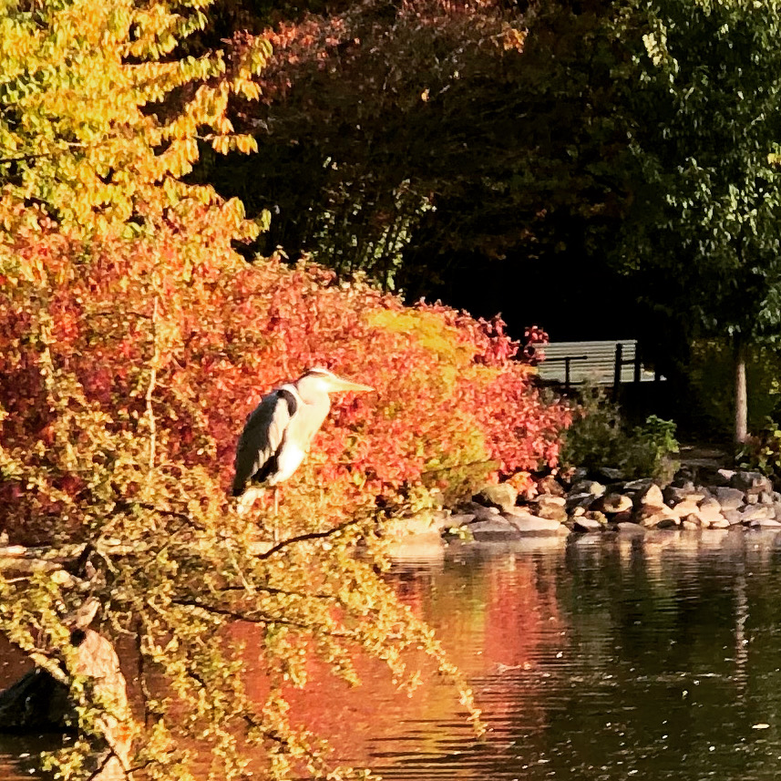 We walked through Stadsparken on the way home and saw the grey heron who often perches on rocks or trees by the pond. The fall colors really made it pop, though it’s too bad I never remember a zoom lens.