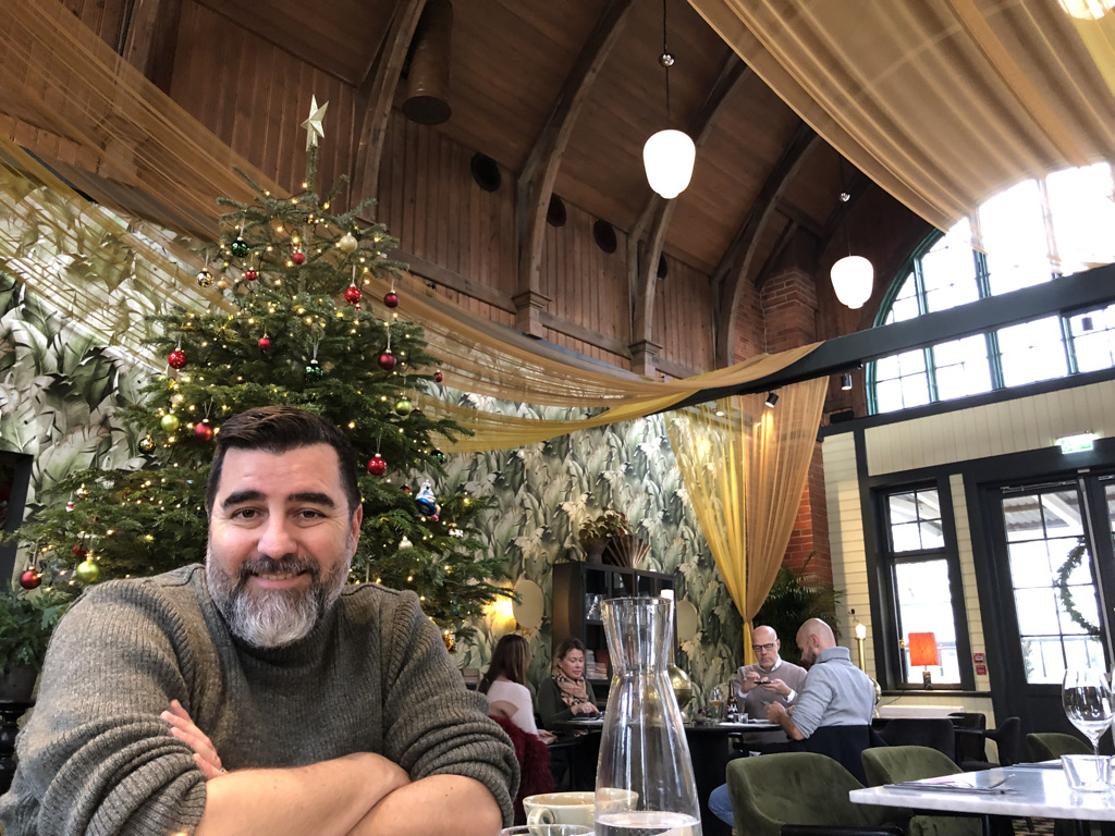 After a nice hike out to see the swans…the immature mute swans being pushed around by some adults. They would bop them on the behind with their beaks and shove them! …Bry and I stopped for lunch at the former train station (1901-1938) with original floors and beams, beautifully refinished. Very good food. I had cod in mustard sauce, one of those Swedish things that I have grown to love. Also the Christmas rice pudding, which I have at every opportunity. I think Golden Grove Goods citrus marmalade would work well as a short cut to this dessert!