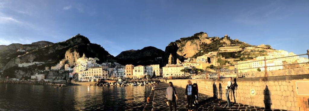 We finally made it back to Amalfi and had a bit of a lie-down, as we all had sore feet. For dinner, we had booked a table online at a place that turned out not to be open (kind of a flaw of the system to let you book for a closed restaurant …) but it was a really happy mistake as we were able to squeeze in at La Gemma, established 1872, which turned out to be the best food of the entire trip. Amazing pasta, risotto, bread, wine, dessert, the works! In a super-cute little setting and great staff.