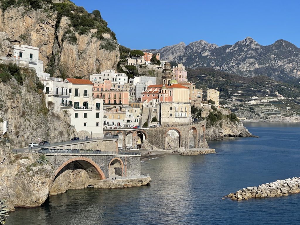 After 4 days, we had plenty of Rome, and wanted to see something a bit different. So we booked a hotel on the Amalfi coast in the town of Amalfi. The town was full of tunnels and hidden staircases and passageways carved out of or through the hillside. Hotel Luna was a 13th century convent founded by St Francis of Assisi, and then converted to a hotel around 1818. Apparently it also was the place that Ibsen wrote the Birdcage, and Wagner wrote some operas and was very popular with famous creative types and VIPs such as Sweden’s King Gustav VI. It was a very cool place (stunning Moresque tiles and architecture) but the advertised pool and beach were closed for the season (which was not disclosed on the Booking page for the place …).