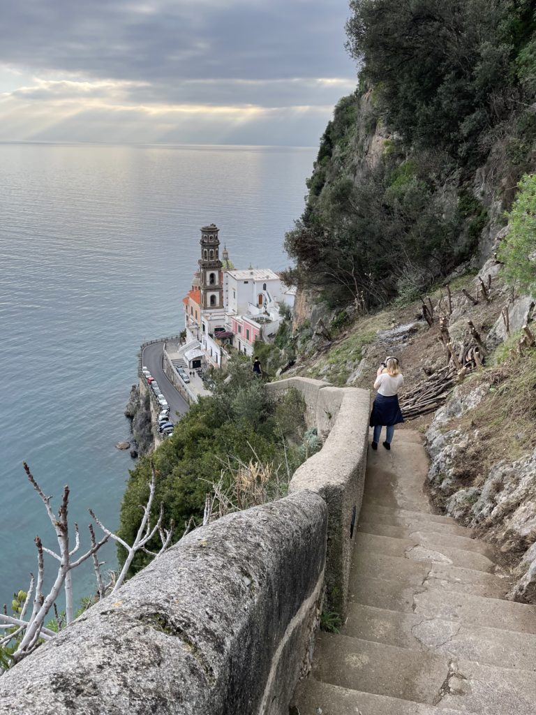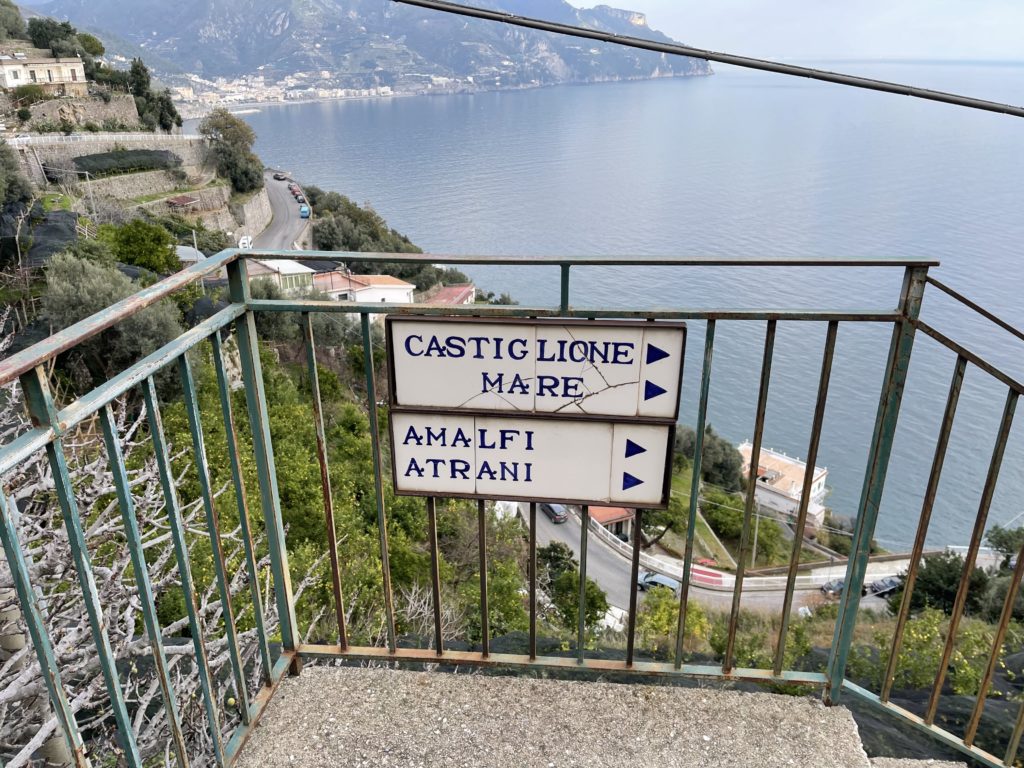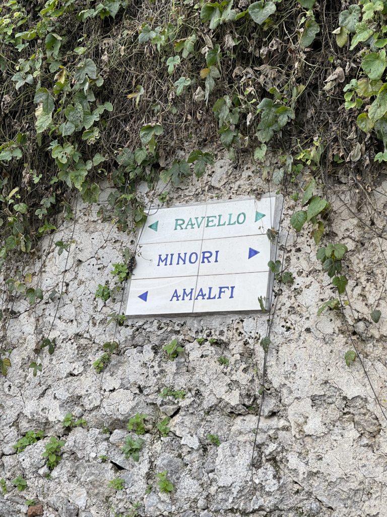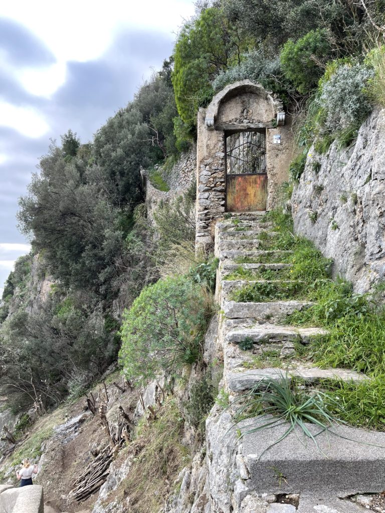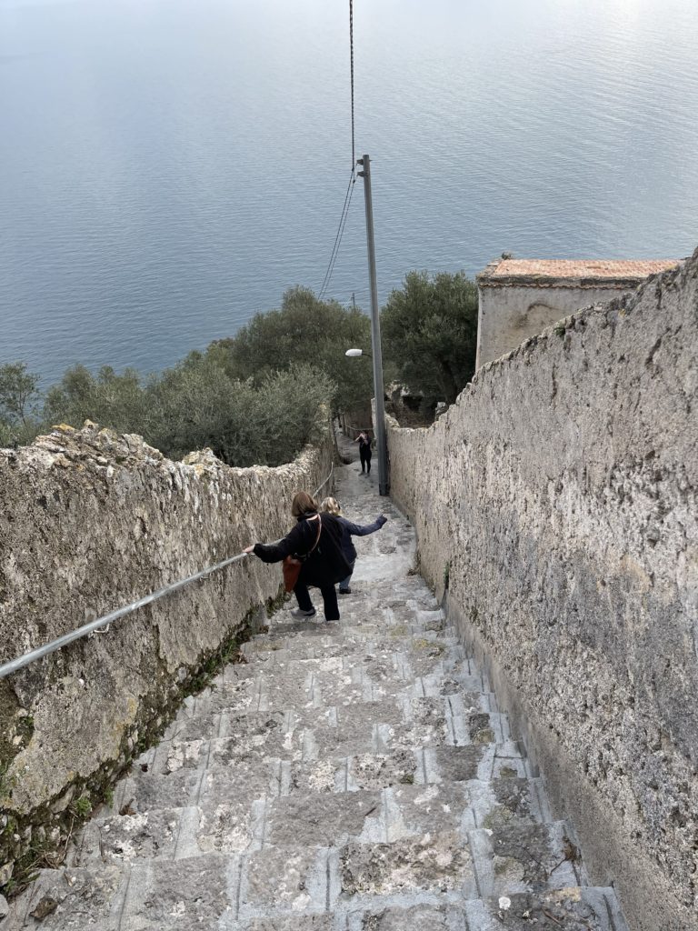 We had a snack at a little bar on the town square to fortify ourselves for the walk back down to Amalfi. We had heard about this route that was over a thousand stairs, and figured, as long as we were going down, it cannot be too hard, right? Well, it was pretty remote and sketchy in a few places, but it was clearly the path as we passed (and followed) a number of signs.