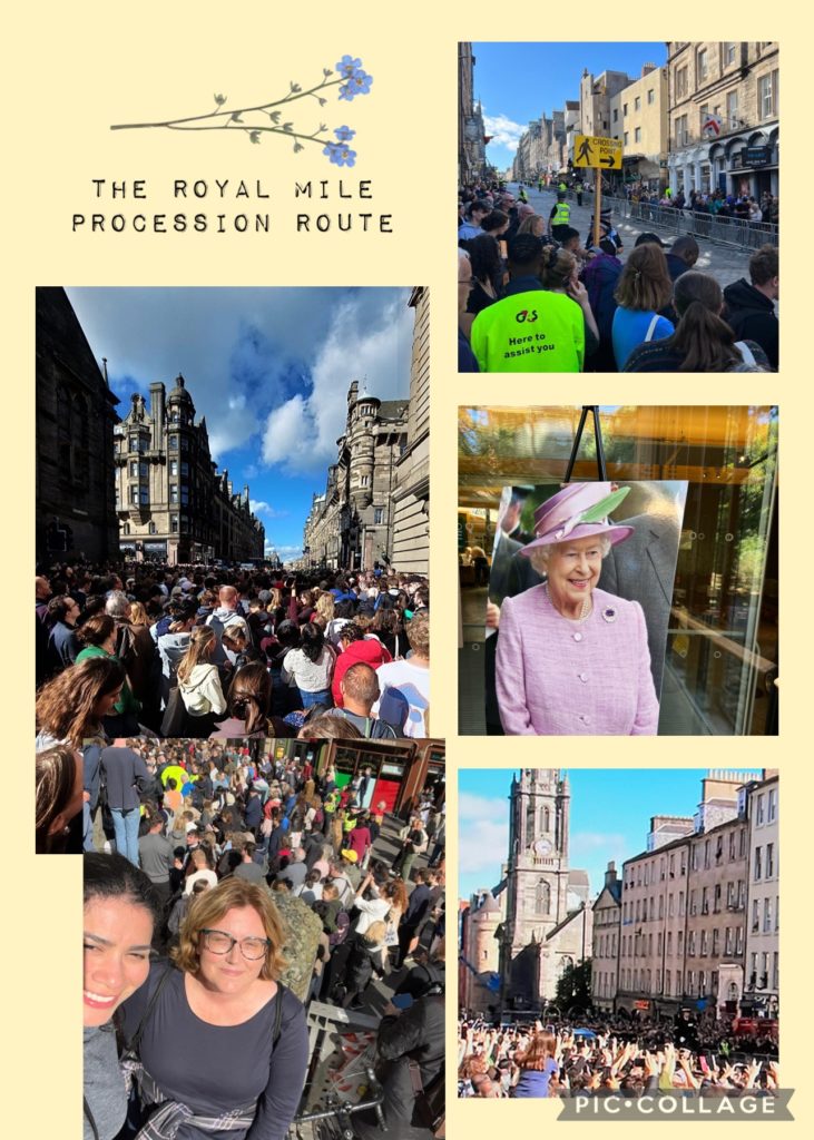 The vibe in Edinburgh was certainly different due to the royal events. It seemed like every shop, and public space had some sort of tribute, some quite elaborate, to the queen. Some shops had signs indicating that the muzak was specially chosen to convey sympathy or otherwise demonstrate respect, solidarity or solemnity. Another strange happening was the seemingly unannounced minute of silence at the airport while we were in the middle of security. An intense Brit literally shushed us!!! While only one guy, as far as I could see, chose not to cooperate. He went boldly on his way without pausing. I felt a tad rebellious about being compelled to honor the queen, but I didn’t have the nerve to do anything different.