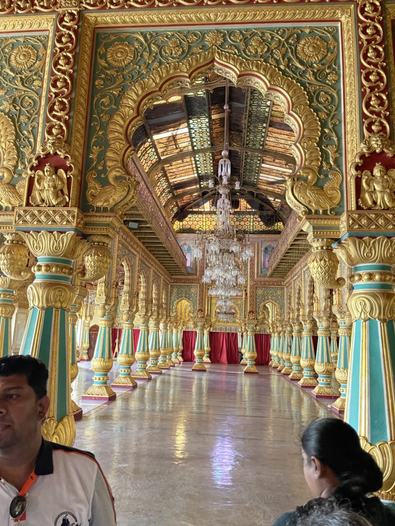 The last post of my India trip is really just about the drive back from Kabini to Bengaluru. Of course, on that drive, we stopped in Mysuru (Mysore) to see the amazing palace. We got a tour, and did some sketchy things with a little extra contribution to the local economy. :-/ But it meant that we skipped a giant line, got a great guide, and maybe got blessings from one of the processional elephants of the King of Mysore …