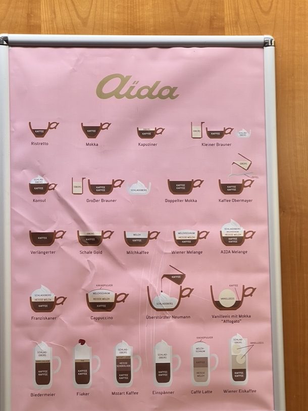 We arrived in time for brunch and I wished, not for the first time since moving to Europe, that I had the nerve to order two coffees for myself right away, because it’s so good, and the portion size (one size only, a bit bigger than a shot glass) is so tiny that I always finish that first “cup” immediately. There’s no such thing as a warm-up because it’s not filter coffee. Vienna has it’s own coffee drinks menu, my favorite was the Vienna mix or melange. Delicious! The trick is to make frequent stops for coffee.