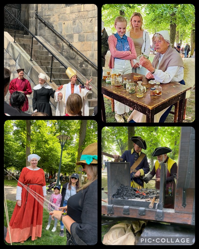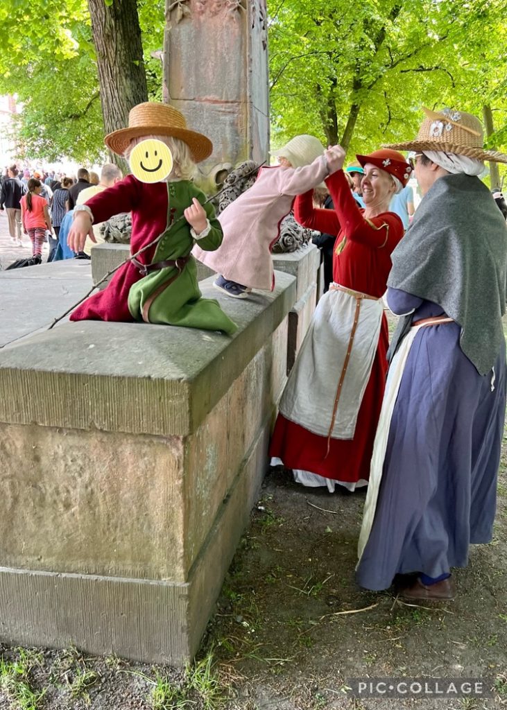 We had delightful weather for Lunds historiedag, a cross between a mini Renaissance Festival and a historical recreation club, spanning 1,000 years in the history of Scania. This year is special because it is 900 years since the inauguration of Lund Cathedral in 1123. Andrea managed to get us registered for 3 guided tours in English, and in spite of a mix-up regarding the viking runes tour, we thoroughly enjoyed the day. Missing one tour might have been for the best as we met up with Carole and were able to visit the medieval market, a soldier’s encampment, complete with demos and food samples, a knight’s mêlée, plus some renaissance dancing. I’m sure I’d have been too tired to see everything if we’d done a third tour. Jewelry, pottery, wool and lots of cool craft items at the market were tempting, but I will need to allow more time at the market to make up my mind.