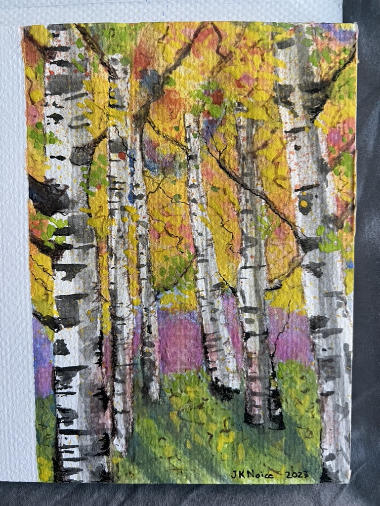 I’ve started painting again, mostly acrylics with the Friday group, but it inspired me to do a little on my own as well. Sewing class is going OK, though my first project turned out much better than my second attempt!