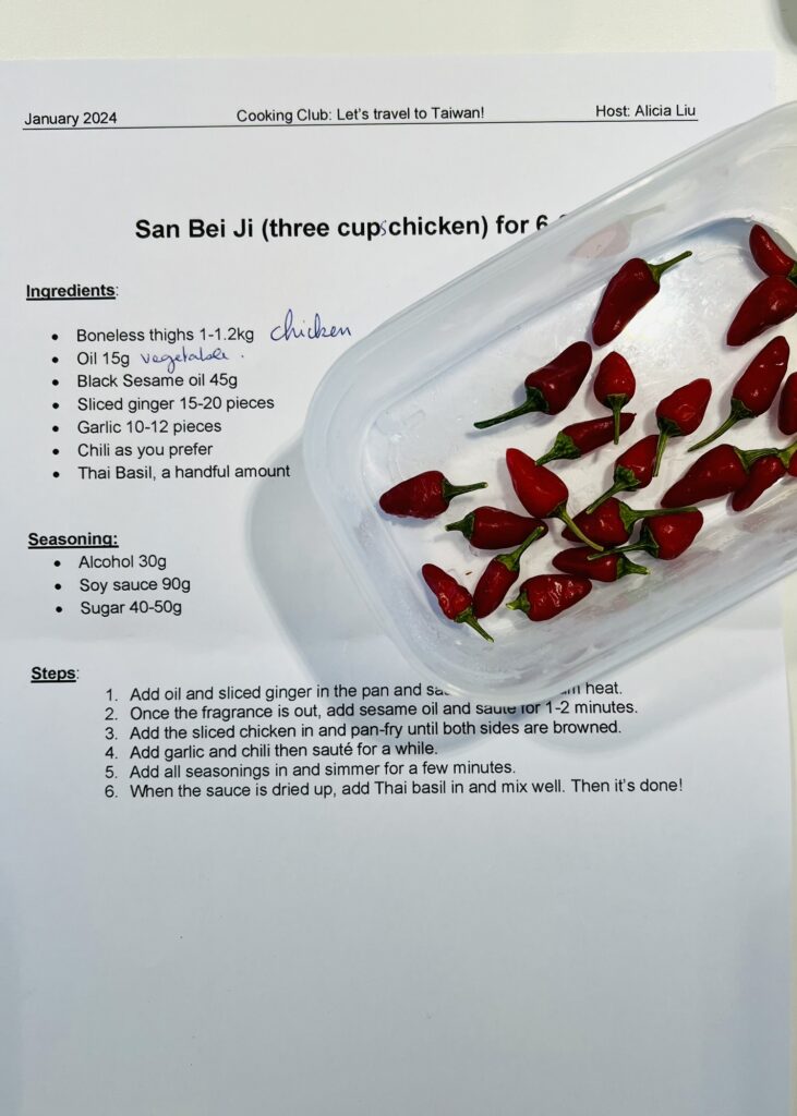 Cooking Club resumed and Alicia hosted a Taiwanese meal. With the upcoming Lunar New Year in mind, she choose these traditional dumplings, with Three Cup Chicken, a simple salad with black mushrooms, cucumber, and carrot, and Bubble boba (tapioca) milk tea with some Taiwanese goodies for dessert. It was so delicious and the best part is that I feel that I can replicate these recipes! Alicia gave us some fantastic tips and techniques that I think will make all the difference.
