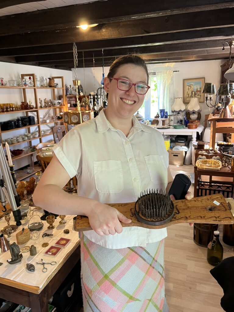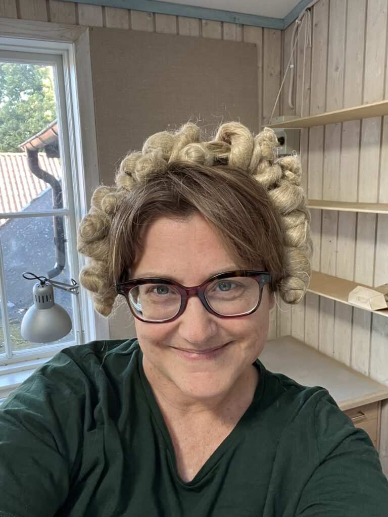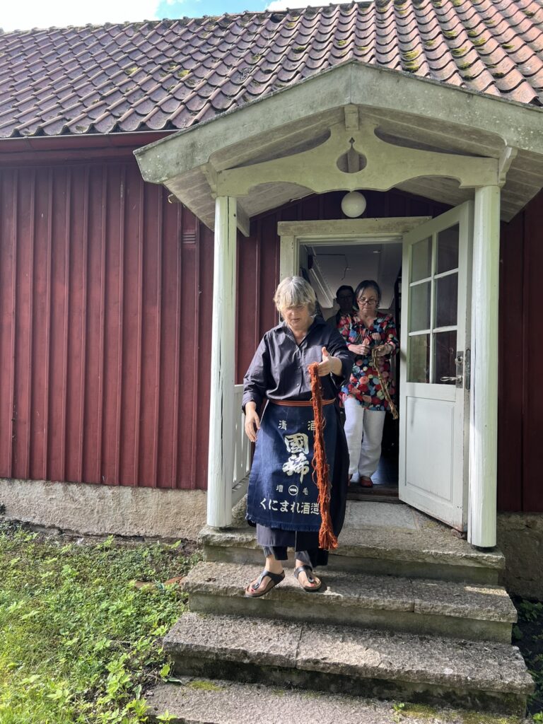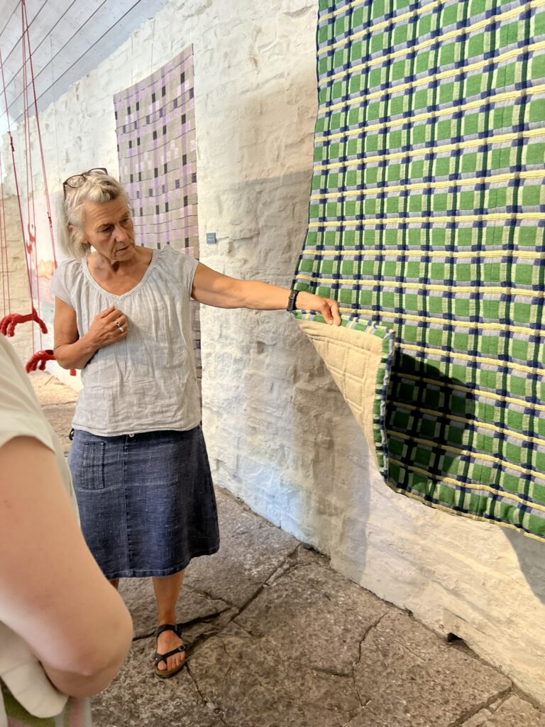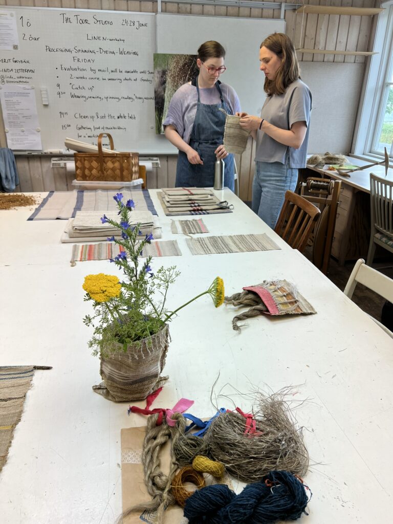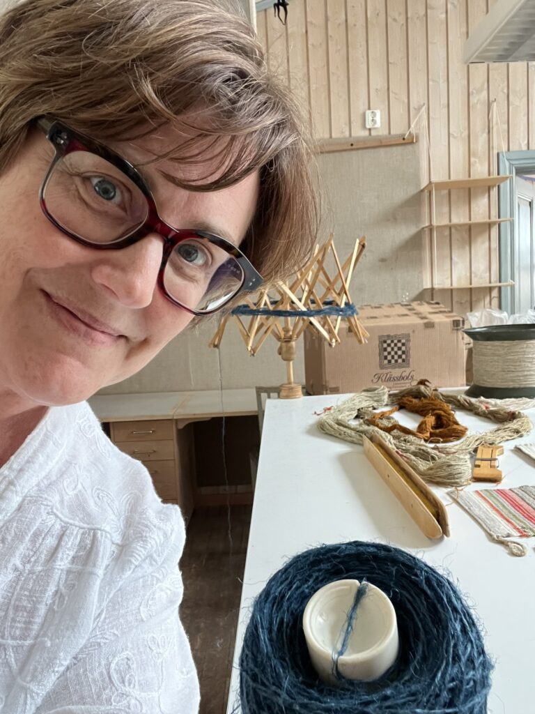 Capellagården, a folk crafts/ art school on the island of Öland, arranged with Sarah from The Tour Studio for a special course to be taught in English. I know Sarah through the International Citizens Hub and so had the opportunity for a spot in her linen workshop. The other participants all came from the US, Canada, Germany and Australia. Most of us stayed in Kalmar, on the main land and drove out to Öland daily. The weather was perfection and we were able to do most of the tasks outdoors. It should have been obvious that turning flax into linen would be hard work, but I underestimated how tired I would be! Some of the group stayed late in the evenings to continue the spinning process or to work on their weavings, however I found it necessary to return to the hotel where I relaxed and recovered for the next days’ adventure. The tour included a couple of workshop and museum visits. It was a nice balance of crafting, learning, exploring the gardens, and excursions. The food was excellent at the school and not bad at the hotel either. I enjoyed not having to think about what to buy or cook!