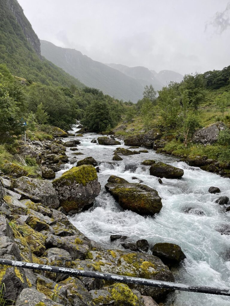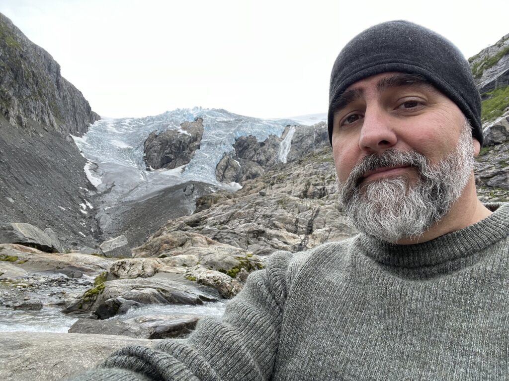 Second day, we went to the other side of the Folgefonna glacier to Buar (UT.no link). This was a much steeper and more rugged trail, including with some sections of via ferrata. But the views and the glacier were very worth it! We remembered to bring the food this time and had a nice hot lunch at the top of the hike. The hike UP was hard, but the hike DOWN was actually tougher on my old joints! But I managed with no sprains, and it was great to dip my feet in the freezing river after!
