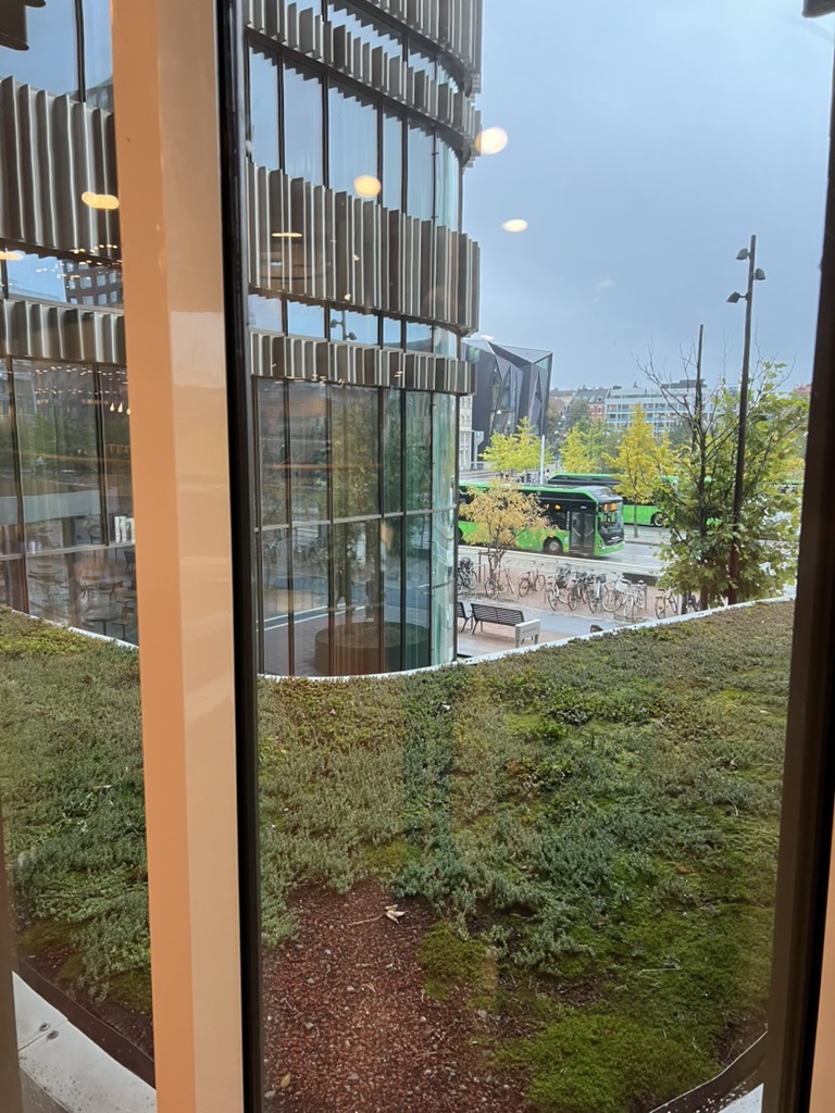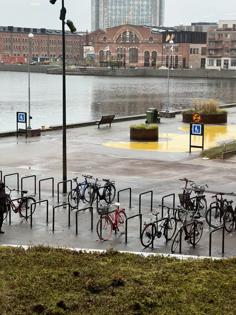 My regular Swedish lessons are in a lecture hall in a modern building near the canals and train station in Malmö. The amenities are great; lots of bathrooms, study spaces, conversation nooks, comfy seating and even a cafe. My pronunciation classes usually meets in another building which also holds the University library. Once aboard the train headed to Malmö, I usually enjoy the change of scenery! Today I took advantage of the long lower level platforms of the train station and did my daily walk sheltered from the rain.