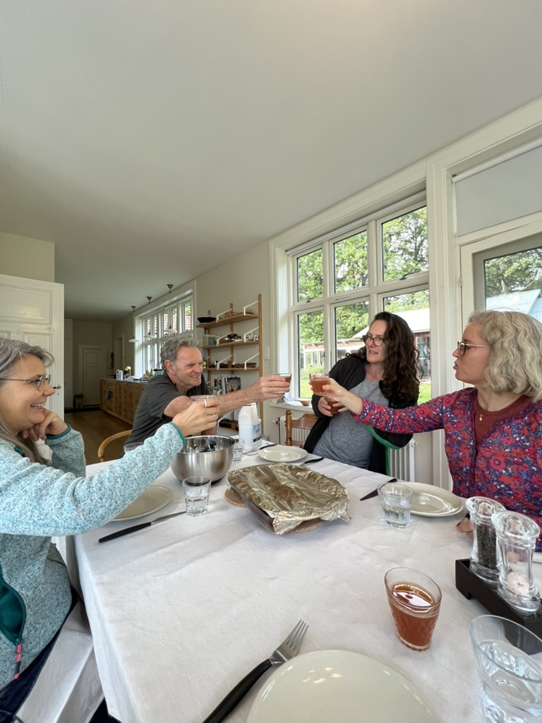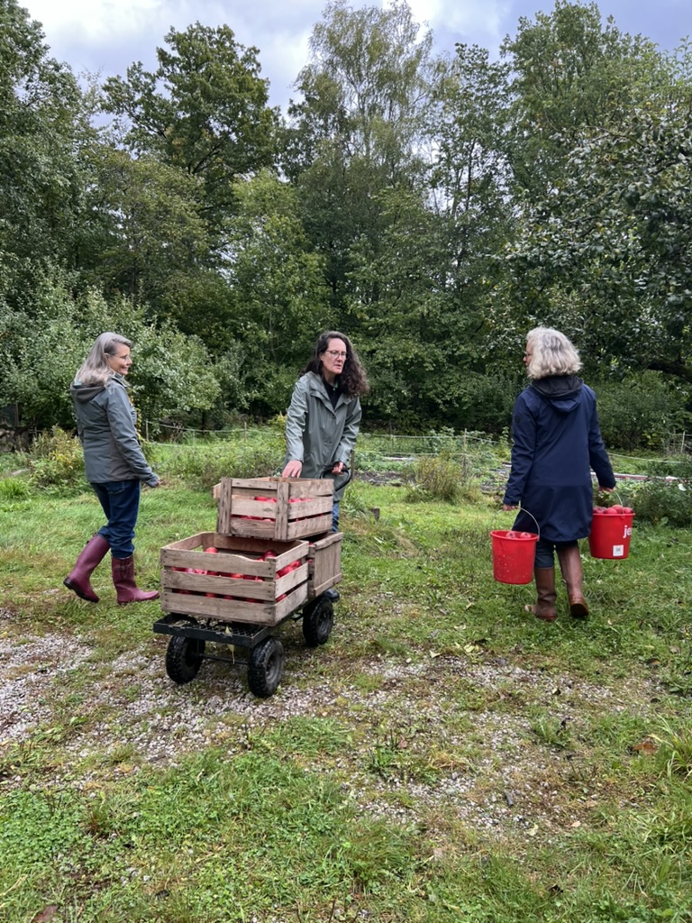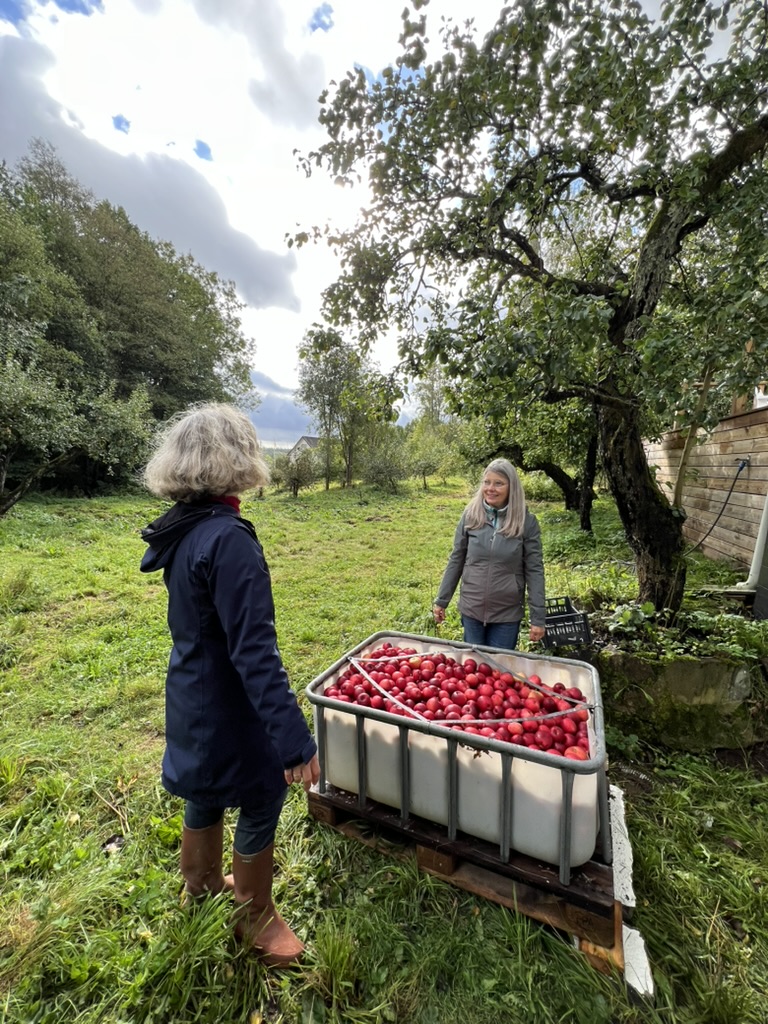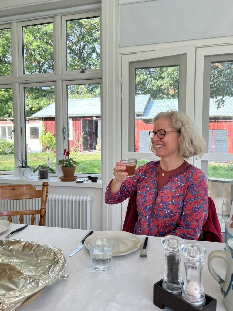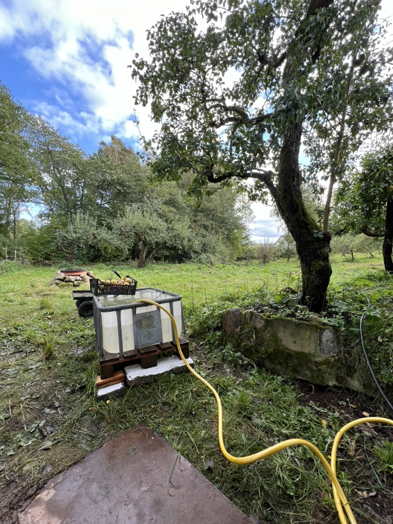 Carole invited me for a drive out to the orchard and renovated farm house belonging to transplants Simon and Sarah. Having heard lots about the orchard, I was eager to visit and catch up with Sarah (of Capellagården textiles fame). Karine, another French expat also made the journey from Kristianstad so we had many hands to help with making lunch, picking apples and pears, juicing and bottling. We were quite lucky with the weather and managed to dodge most of the rain. The pizza oven lived up to it’s reputation and we paused to fika and lunch at intervals. Plans are underway to return for more picking and cider making.