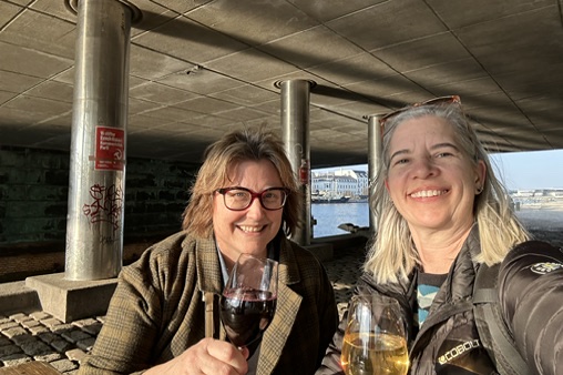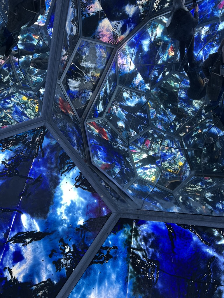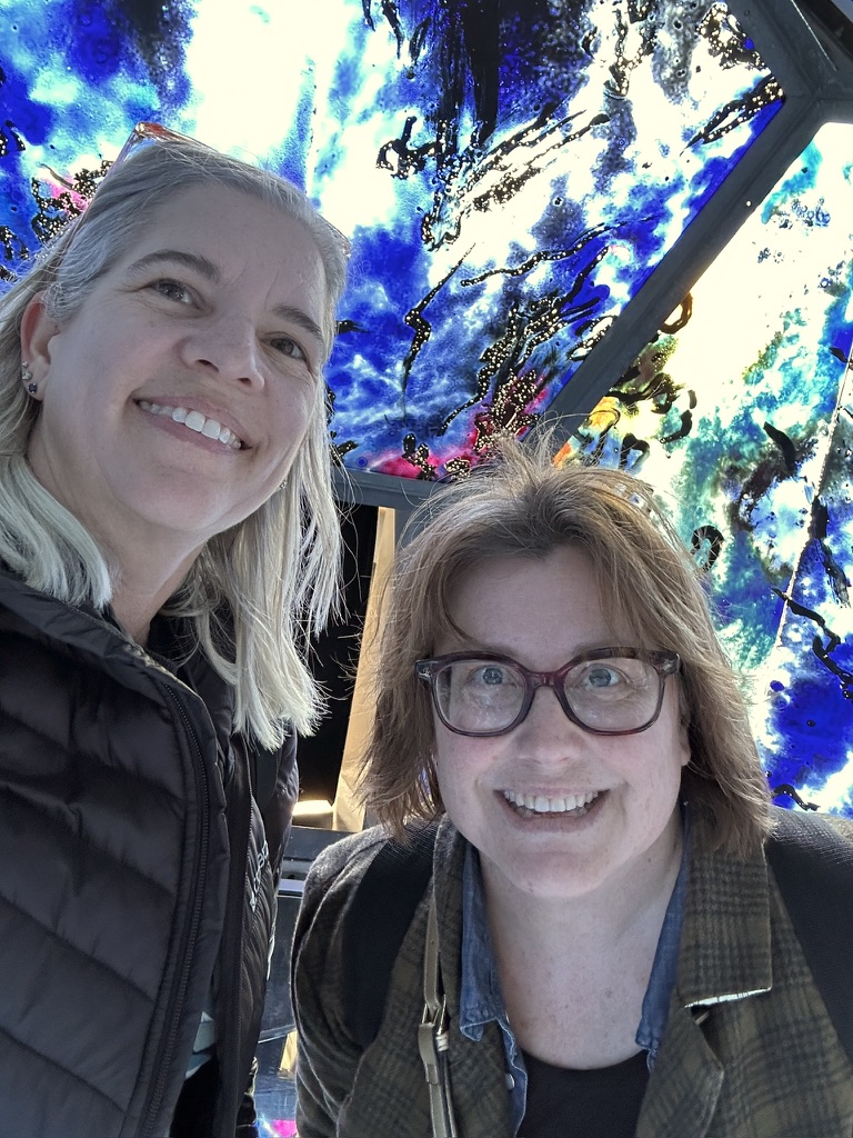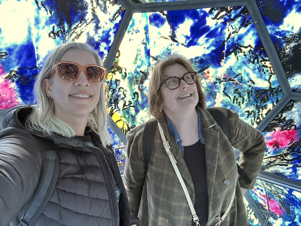 Melissa and I did not have to rush home as soon as Erin and Glen so we took a scenic route back to the train, stopping along the way for a glass of wine under a bridge on the harbor, and we even climbed inside a giant Kaleidoscope art installation!