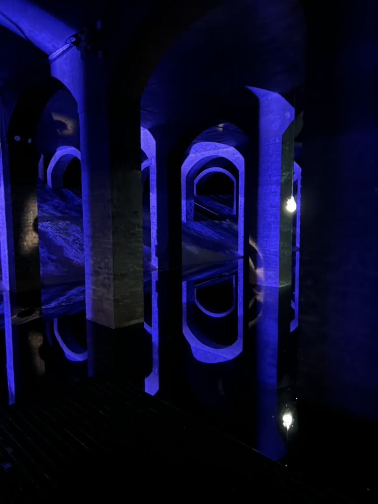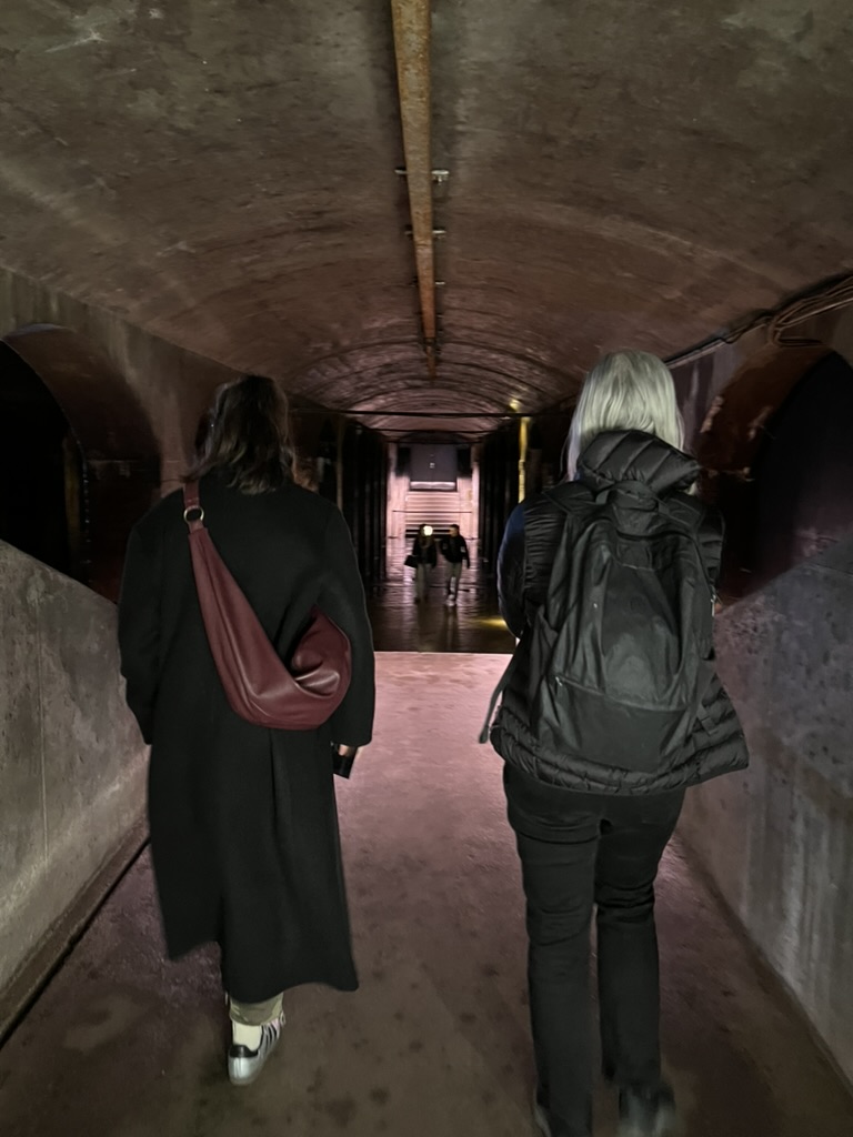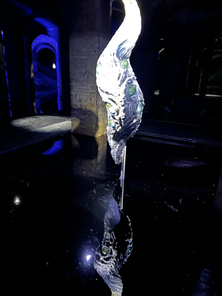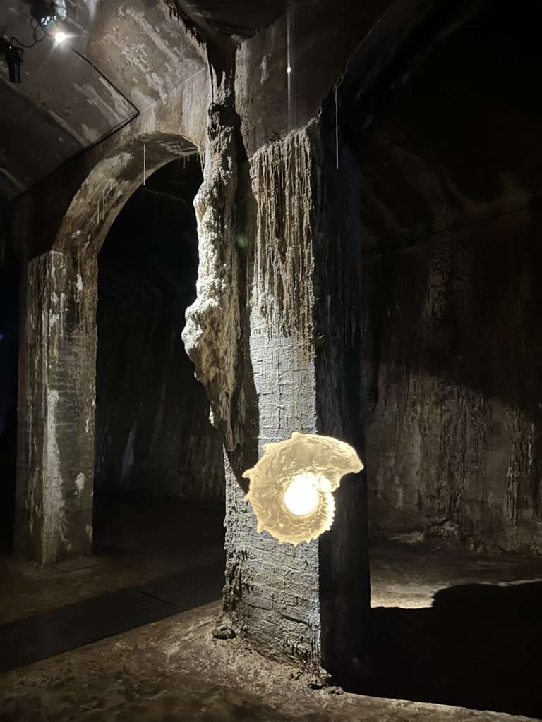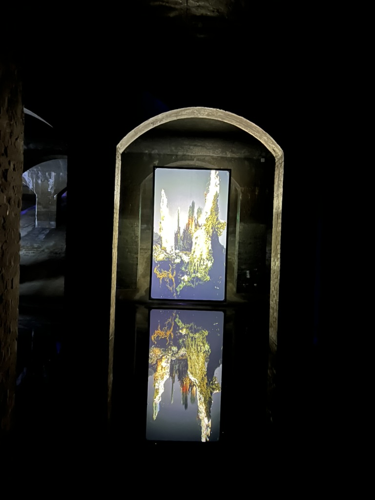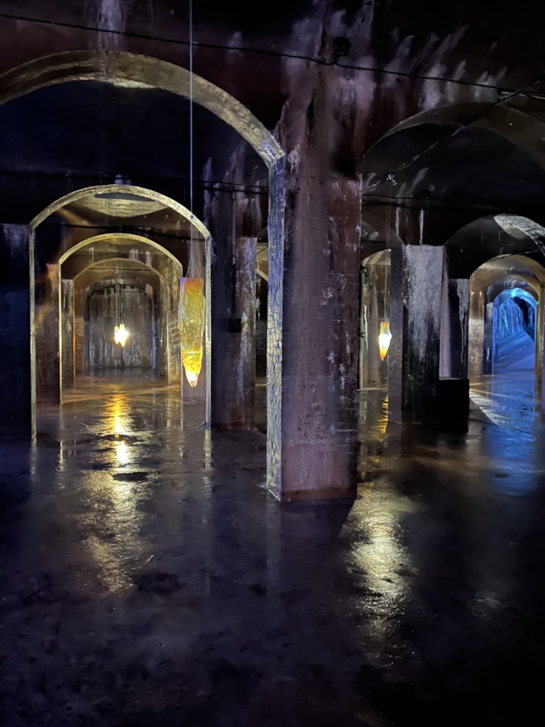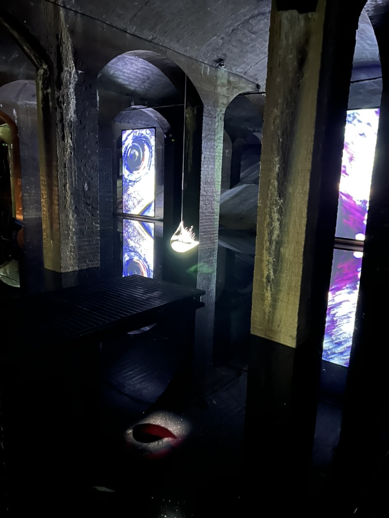 Once a large school group finished their visit, we made our way down into the underground water cisterns-turned-art gallery. As our eyes adjusted to the darkness we carefully traversed the tunnels. The unusual atmosphere makes for an intriguing gallery experience with the visitor being immersed in the slightly spooky former water reservoir chambers.