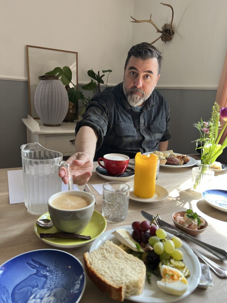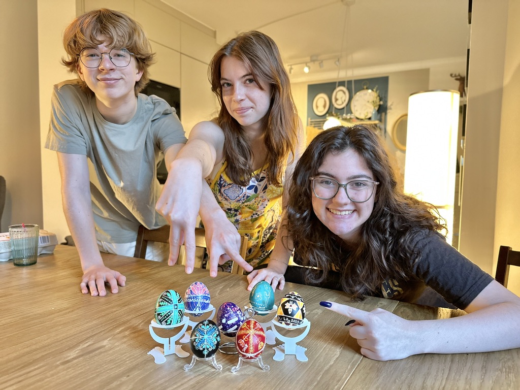 Other Easter festivities included our new tradition of decorating eggs, Ukrainian style, with the Gouldeks. This time some neighbors, 2 year old Henry, his mom Sofia, her sister and parents joined us for a brief intro to the technique. Other neighbors upstairs (we swap cat care duties) invited us for their family easter dinner, which we learned is celebrated on Saturday, stemming from an old religious tradition of beginning the holy day on the evening prior. They generously made room for us among the parents and partners from both sides of the family. We ate a delicious meal starting with Polish sour soup, Sebastian’s family recipe with rye sourdough starter, white sausage and potatoes, followed by many of the usual Swedish holiday fare: lamb, chicken, salads, herring, Västerbotten cheese pie and raspberry chocolate brownie cake for dessert. We brought creamed corn which was well received.