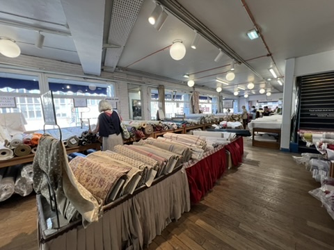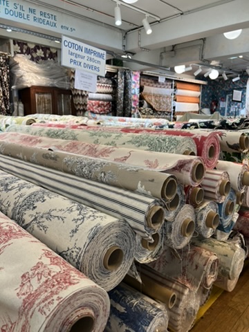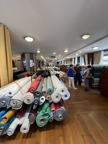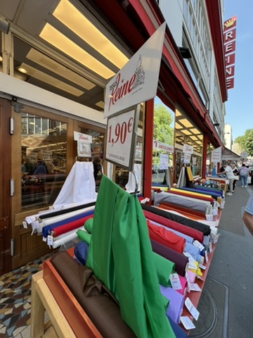 I wanted to check out the textiles district to see about a future fabric shopping trip and pick up some notions that are hard to find in Sweden. I was blown away by the assortment of fabrics. And just after Carole related the story of a friend she met while working at Harrod’s London, who made her wedding dress from materials purchased in these shops, who should we encounter but “La Philomène” herself, in the company of yet another friend of Carole’s exploring the 6 floor textiles department store. It’s amazing that we met! We could have been near each other and never crossed paths considering the size of the shops.