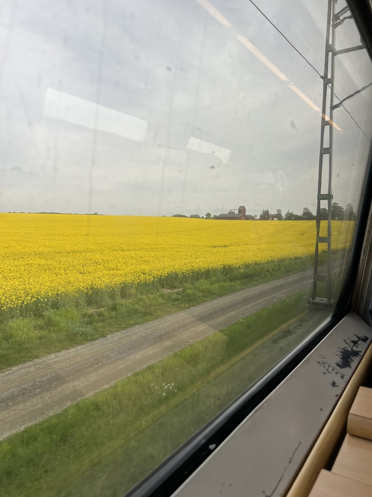 May brings blooming “rapsolja” fields throughout Skåne, which we admired on our way to Helsingborg. Mom and Dad also had some great views from the plane as it landed in Copenhagen.