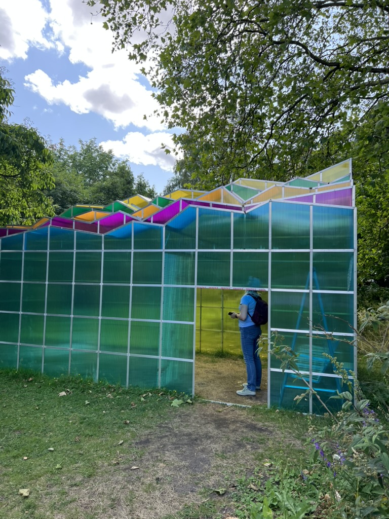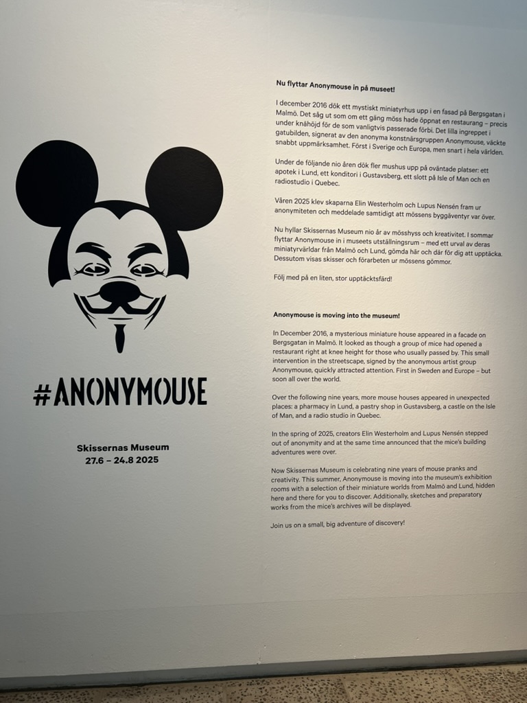 In 2020-21 when first first arrived in Sweden, we saw a few of the Anonymouse installations in the streets of Lund and Malmö. After some vandalizing incidents, the installations disappeared. The artists announced the end of the project. Now Skissernas Museum is exhibiting the entire collection from all around the world. There was even one from Wisconsin! Melissa came to Lund to spend the day exploring with me and we enjoyed lunch at the expanded Buljong soup restaurant, found all the mouse houses at Skissernas, and toured the climate change exhibit at the Botanic Garden which is undergoing a major greenhouse expansion but is still open except for the greenhouses and cafe. Botan has a temporary coffee cart and gift shop. Melissa and I snagged one of the premium garden swings and enjoyed fika in a lovely green space.