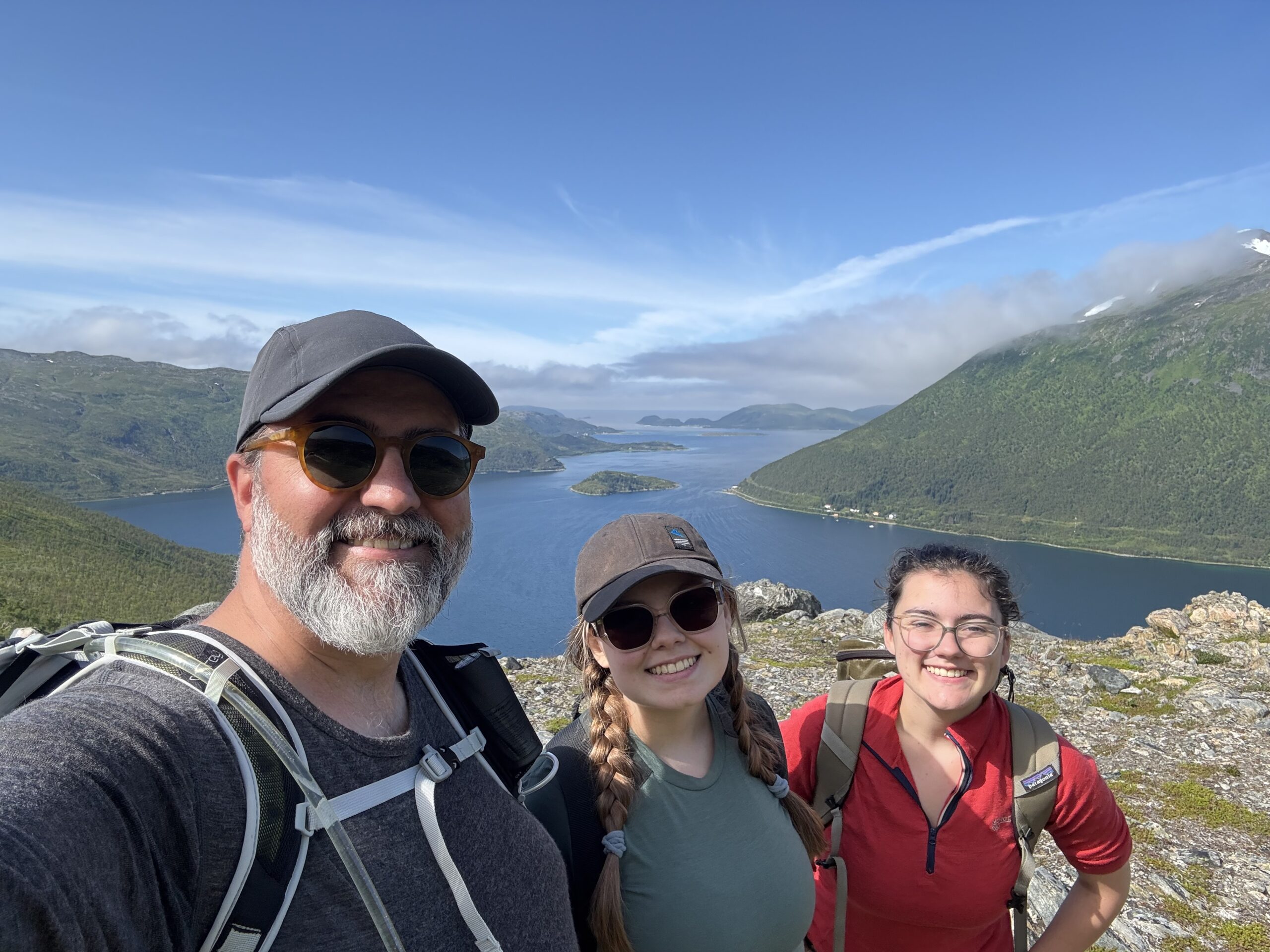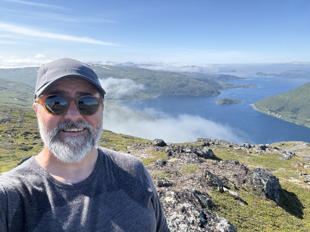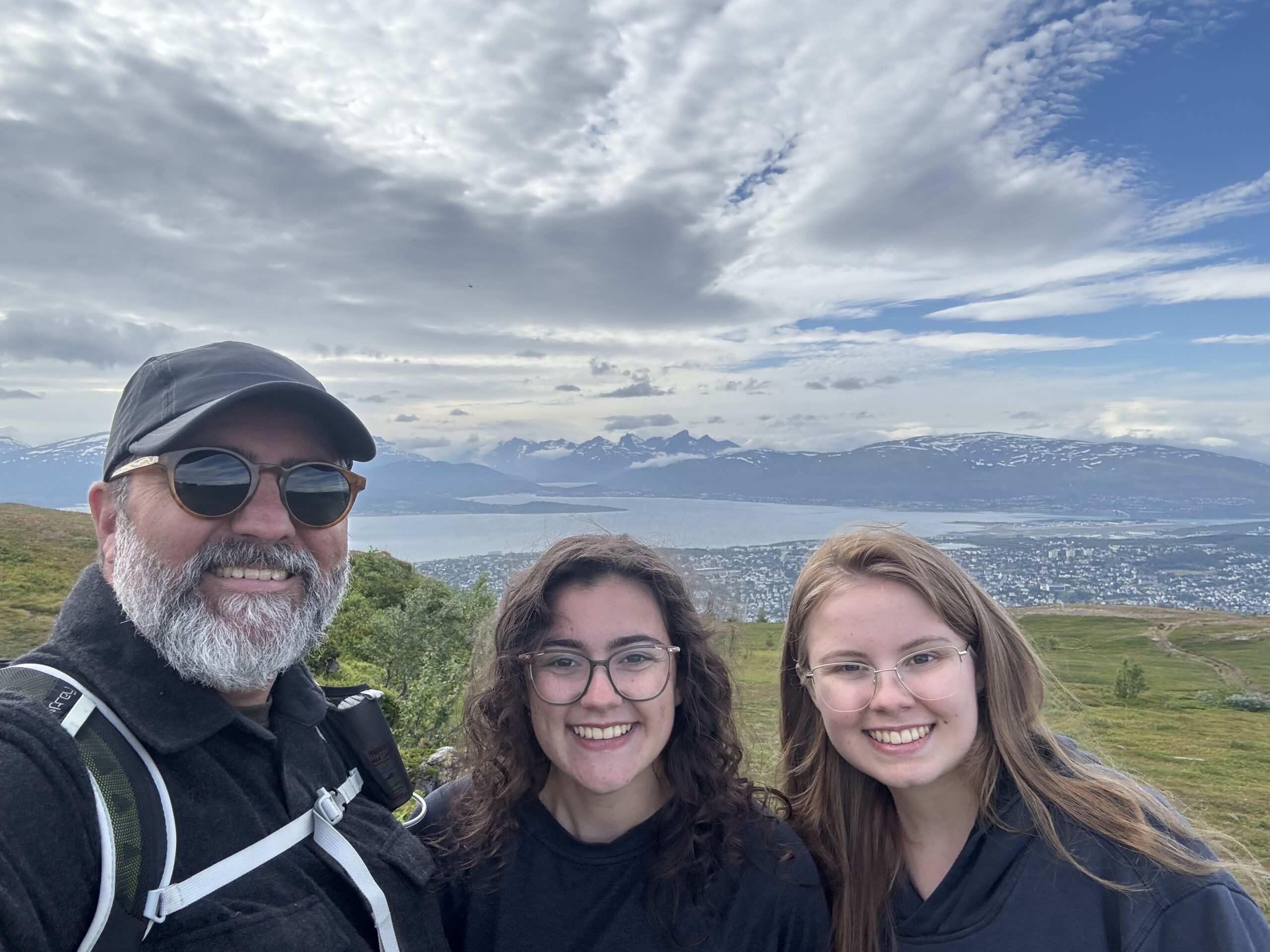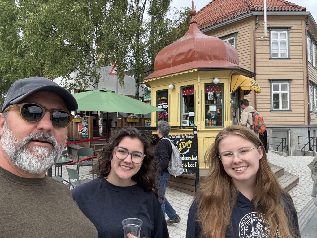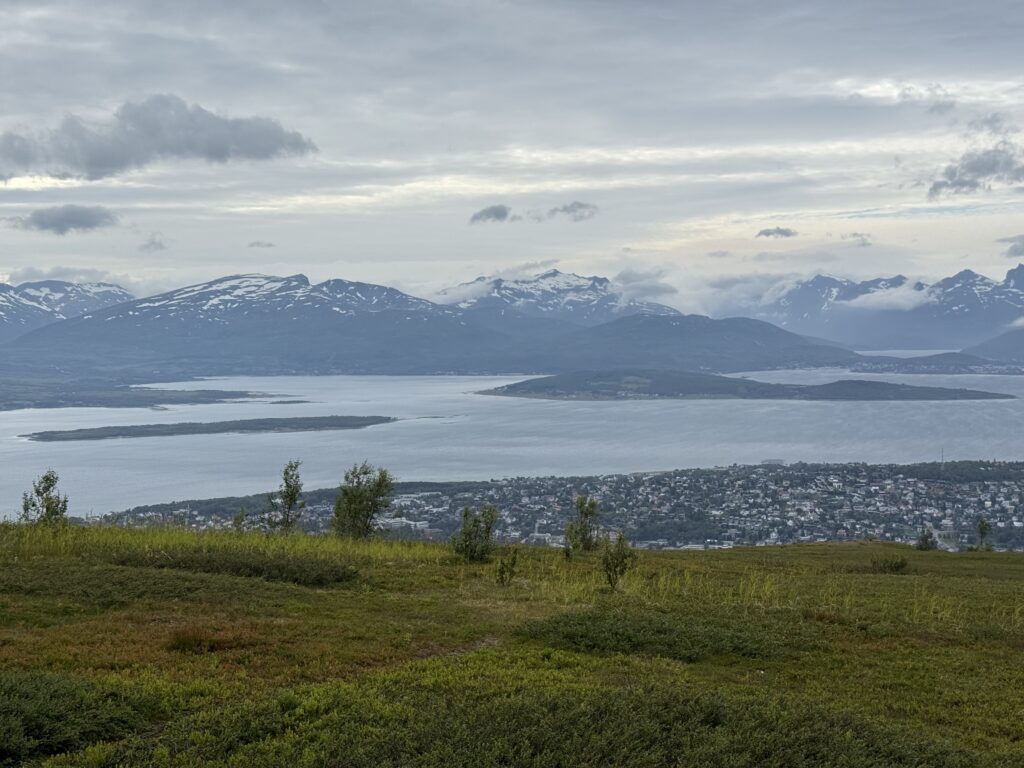 One of our family trips this summer of 2025 was planned as a nature trip to Tromsø Norway, at almost 70° North latitude, it is well in the arctic circle. After the Provence trip, Jen decided to skip this one, thinking that it would be a lot of hiking and bugs (spoiler – she was right). So it was me (Bryant), H, and L that went. Much of the trip was about hiking in the nature of Norway, and Norway has an amazing resource for trail information at UT.no (out-dot-norway) where you can export GPX files of all the hikes and import them to something like Gaia for an offline GPS. Super helpful! Overall, we had amazing weather – sunny and warm the whole time save the last day with a bit of rain. I understand that Tromsø gets 5 nice days a year, and we were there for 3 of them!