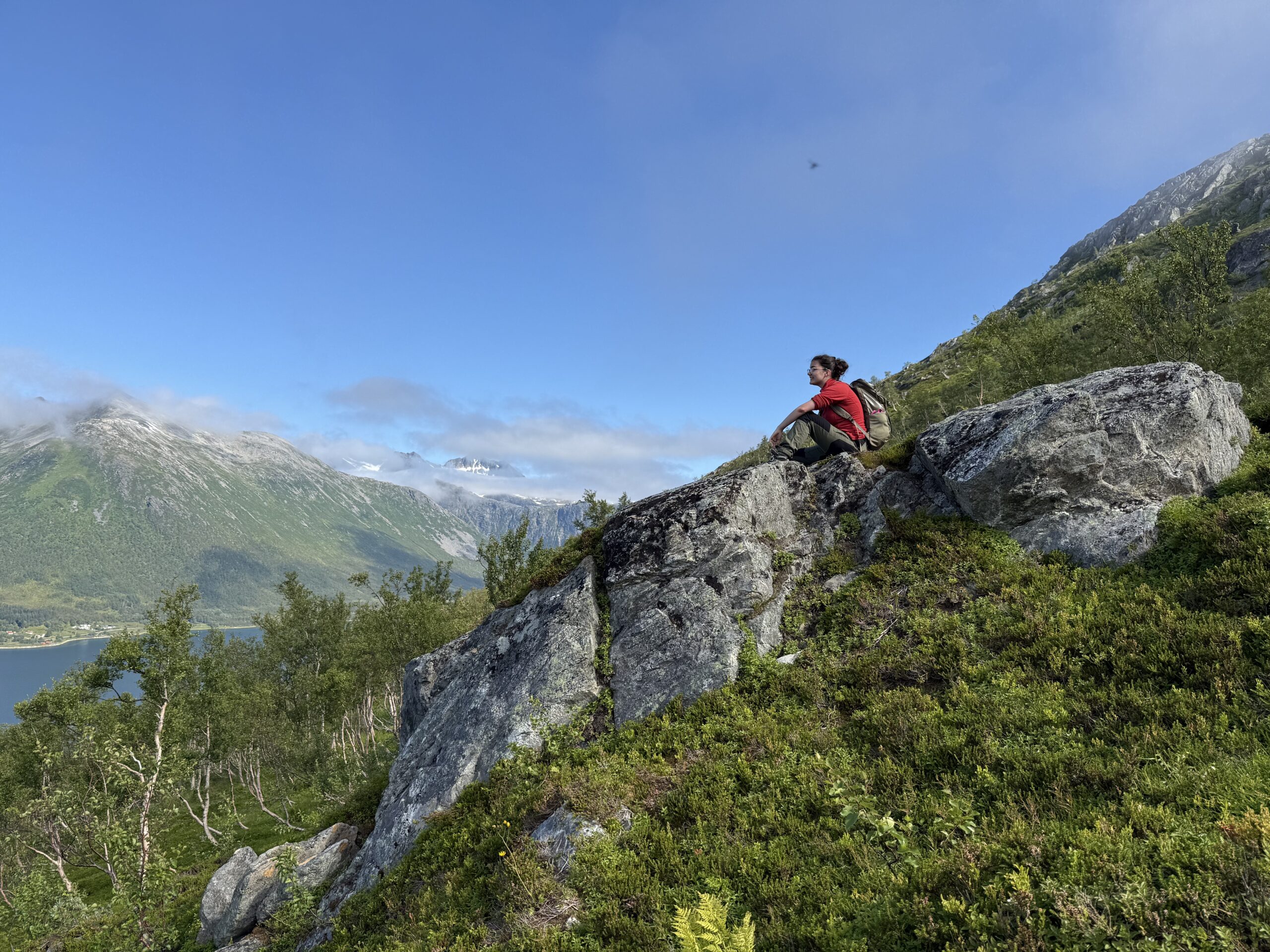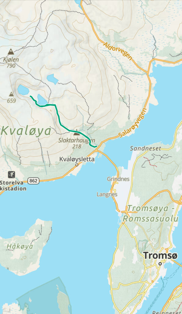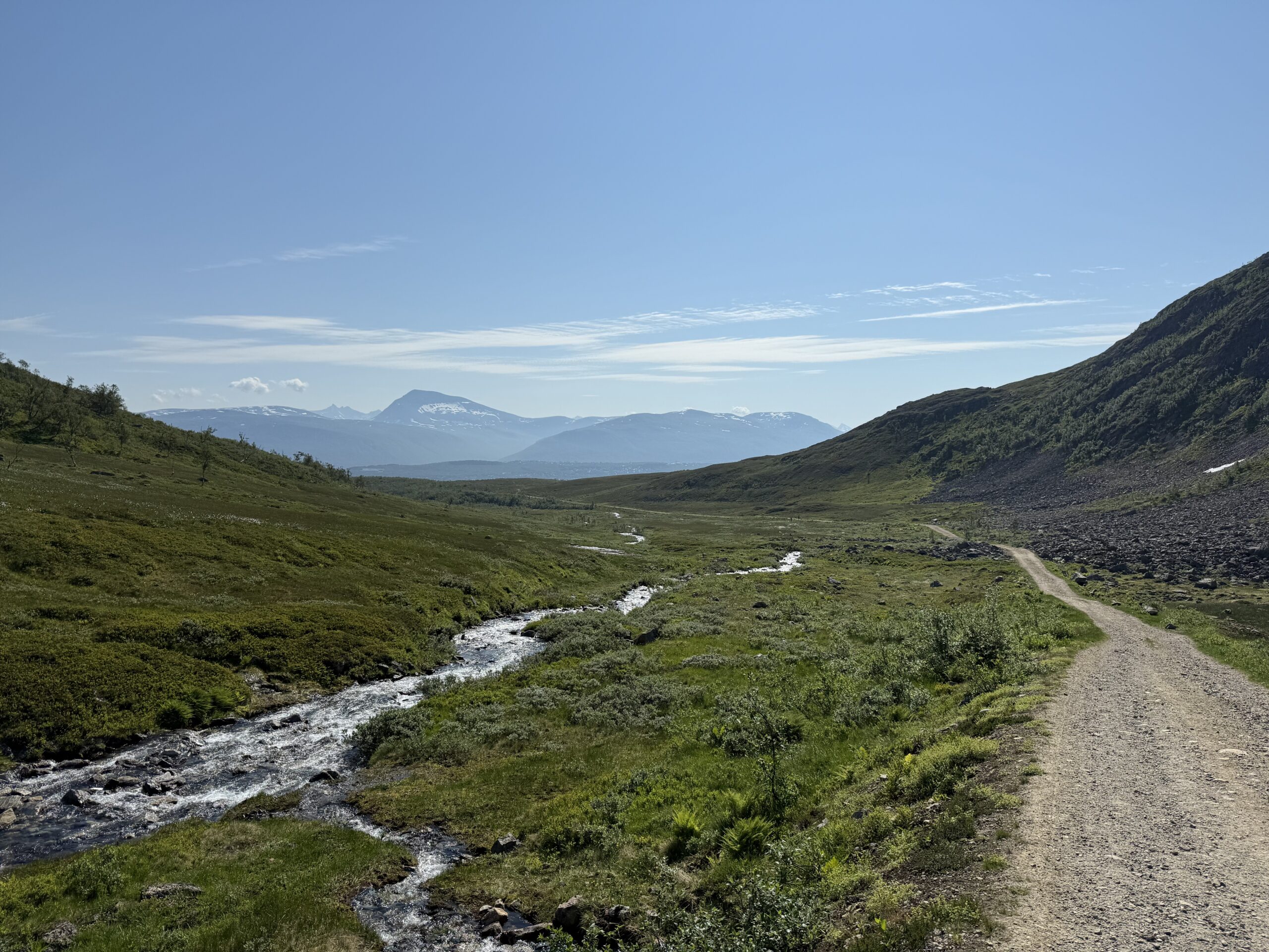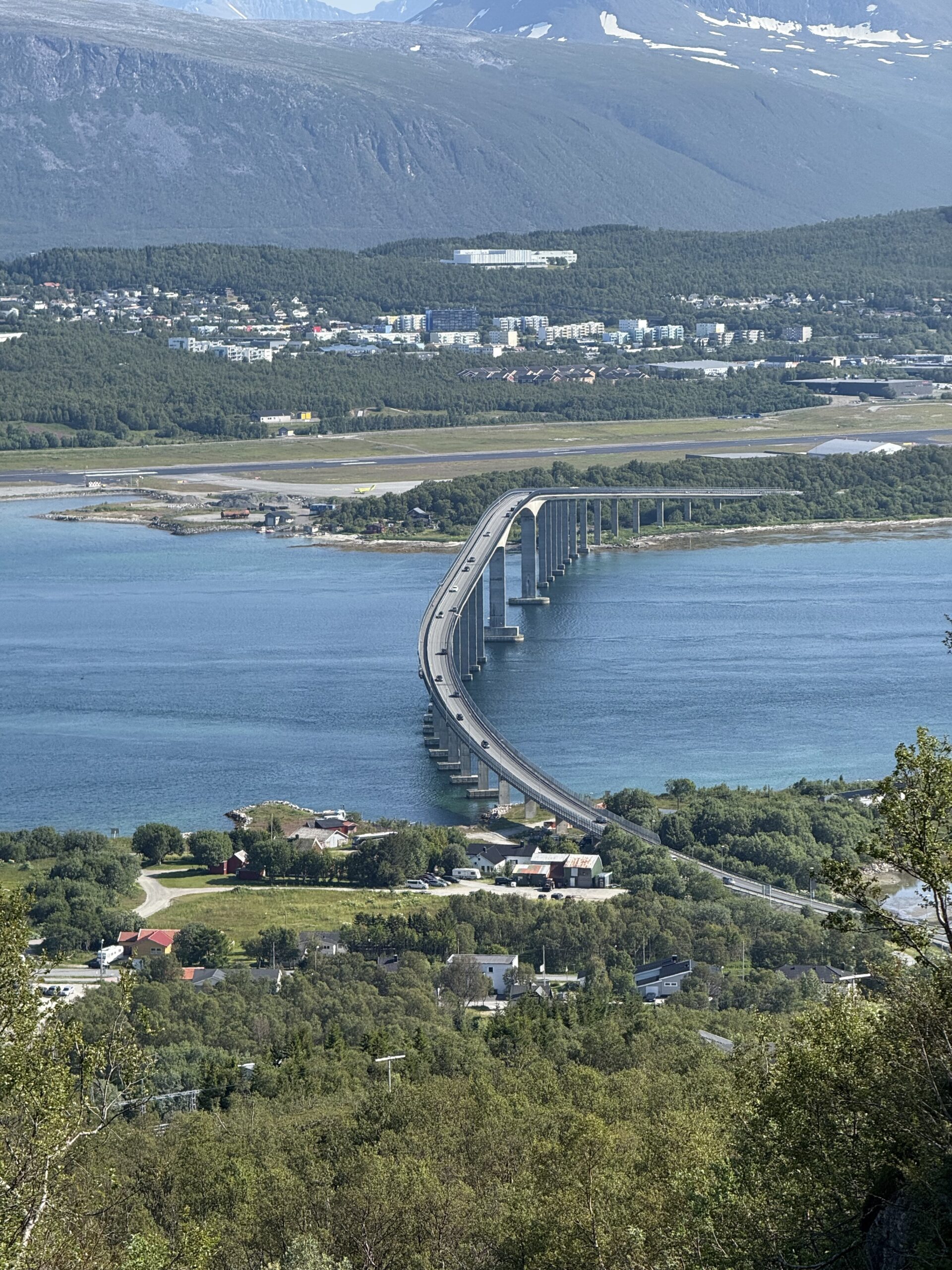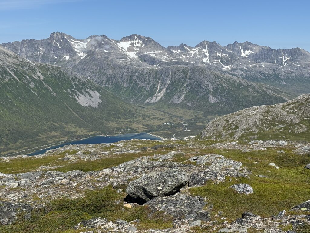 One of our family trips this summer of 2025 was planned as a nature trip to Tromsø Norway, at almost 70° North latitude, it is well in the arctic circle. After the Provence trip, Jen decided to skip this one, thinking that it would be a lot of hiking and bugs (spoiler – she was right). So it was me (Bryant), H, and L that went. Much of the trip was about hiking in the nature of Norway, and Norway has an amazing resource for trail information at UT.no (out-dot-norway) where you can export GPX files of all the hikes and import them to something like Gaia for an offline GPS. Super helpful! Overall, we had amazing weather – sunny and warm the whole time save the last day with a bit of rain. I understand that Tromsø gets 5 nice days a year, and we were there for 3 of them!