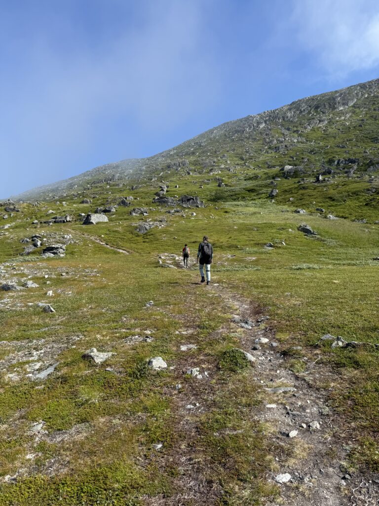 Day 1 started with some breakfast in the apartment and then a hike that was accessible from a bus stop. It was quite close to the town, but still quite stunning once you got past the local school and houses. UT.no link here. There were some sections that were QUITE steep and were even trickier on the way down. One slope that we could see in front of us was deemed “dastardly” by H!