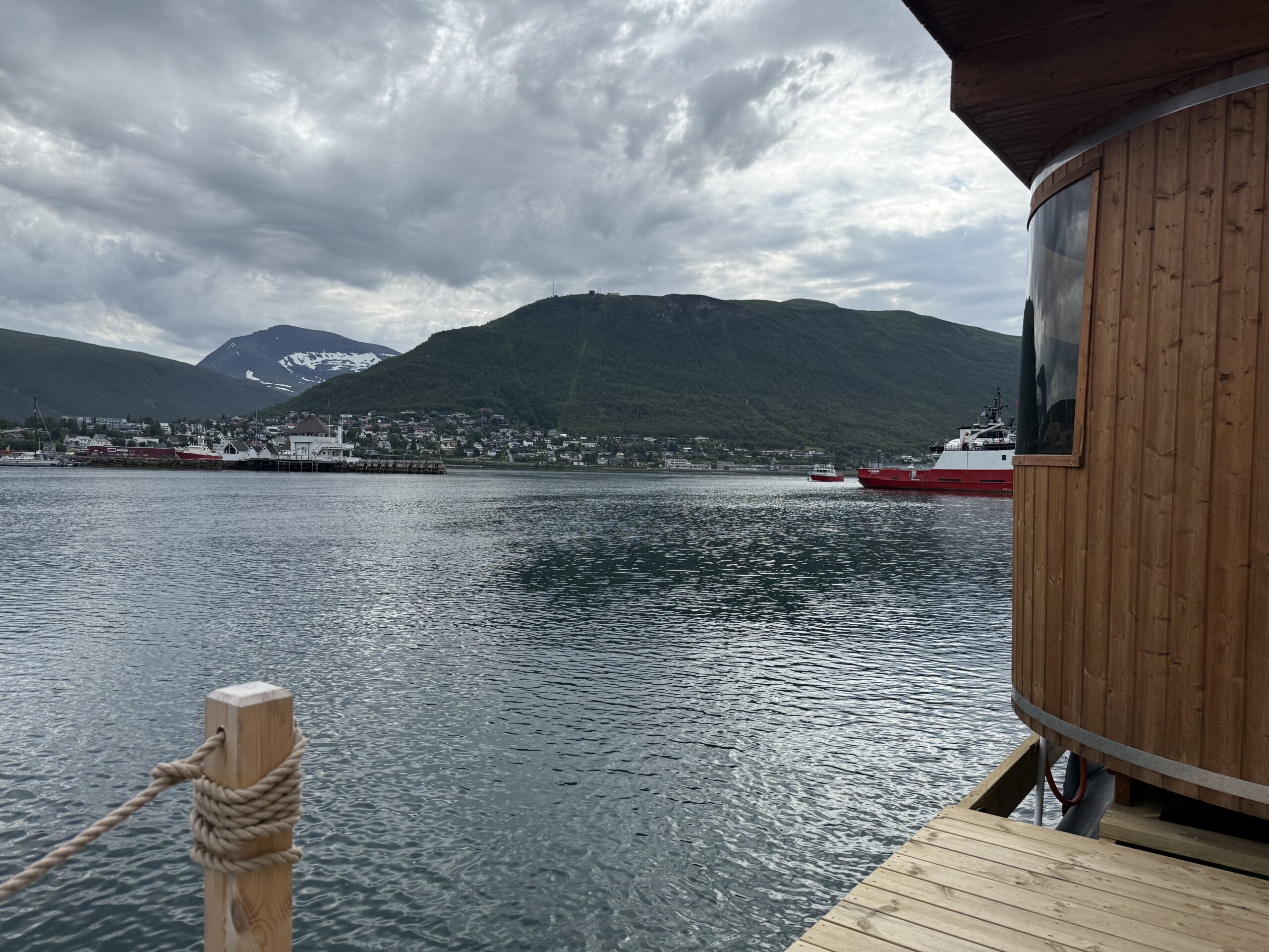 After 2 big days of hiking, we decided to do some relaxing. In the morning, we did a swim-and-sauna outing at Pust’s Lavvo location in Tromsø. We did 4 cycles of jumping in the 11°C water and then in the 95°C sauna. We felt a LOT better after that and went for a reindeer hotdog at the little kiosk in the centre!