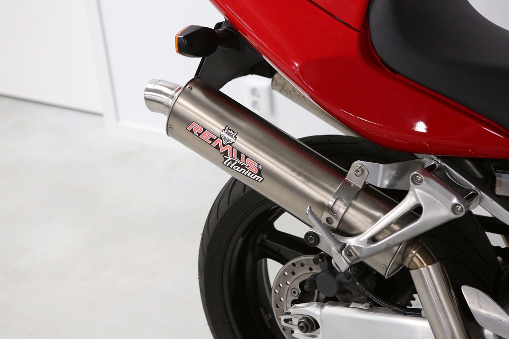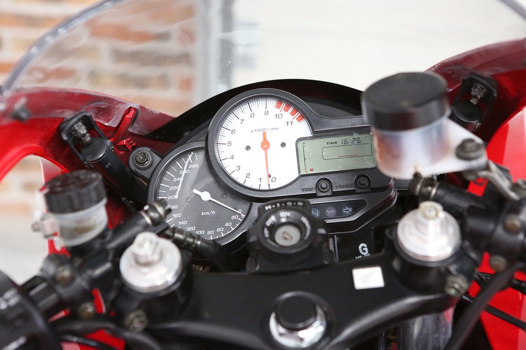 Overall, 43k kms, but in really nice condition for a 20 yr old bike. It had some nice Remus cans and a little full belly fairing. Tasteful mods, and the exhaust sounds AWESOME.