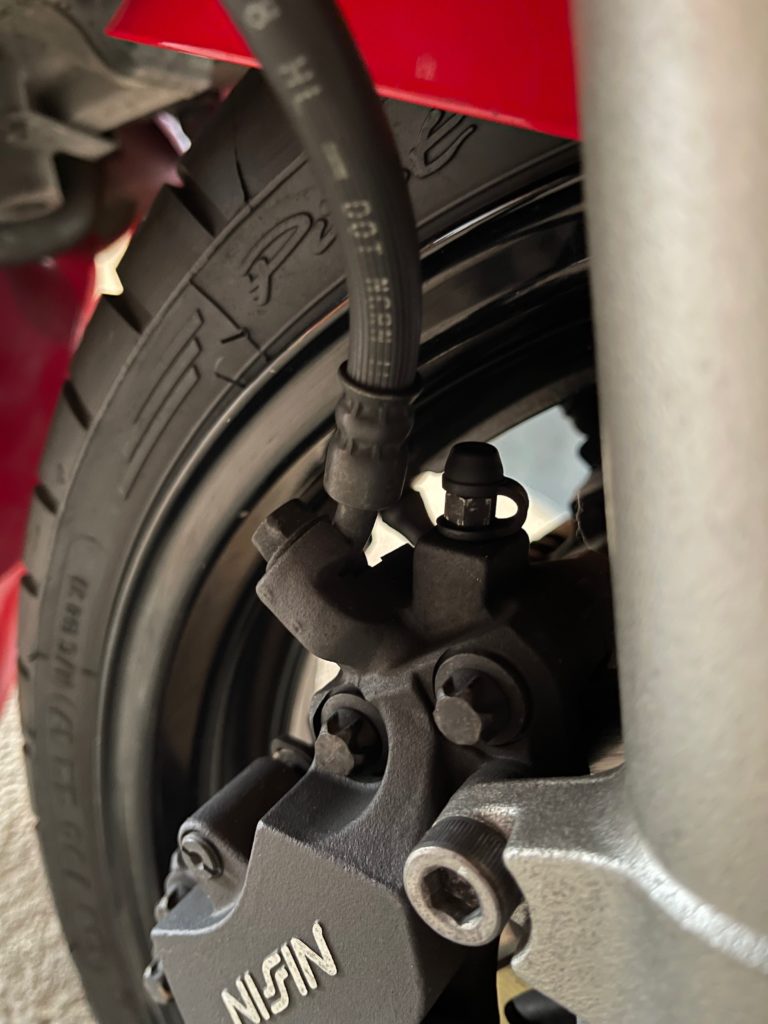 With the correct banjo bolt in hand, I was able to finish installing the brake lines and bleed out all the air. I routed the banjos over the top, and decided not to have them perfectly parallel, but it actually works better – function over form! It had been a really long time since I had bled brakes, but I brushed up and it was not too hard. I had to get some brake fluid, as it is more than the reservoir to basically fill the entire system!