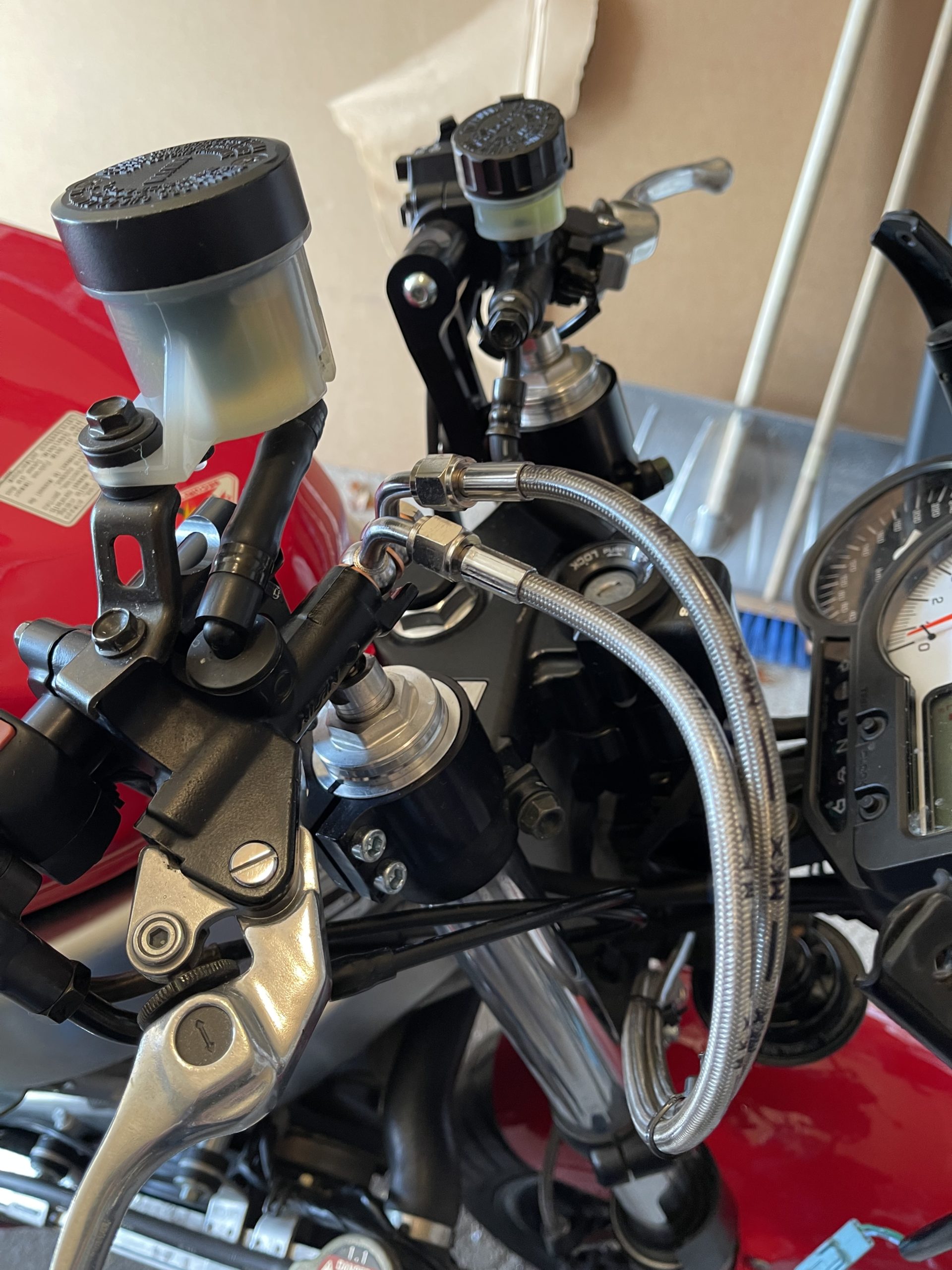 Anyway, this is what they look like. And yes, I removed the stock clutch line and replaced it with a stainless unit so that I would have a bit of length to work with. I am glad I did as the clutch fluid looked like it needed a flush … And the Moto-CNC bar converters are really slick!
