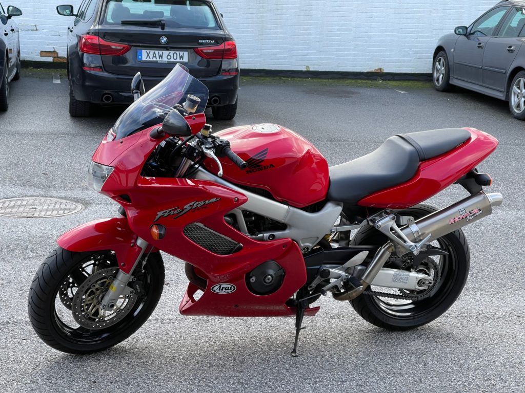 Then I went for a shake-down ride. The sky was clear, but we still had a lot of Eunice’s wind, which was not ideal. The brakes are nice and firm, as expected from braided lines. The bike rode quite well, and the cockpit config is nice on the back and shoulders. I have not put any bar-ends or other vibration absorption in yet, and I can tell, as my hands were buzzy after a ride out to Veberöd. Of course, I am a little rusty, but my muscle memory was starting to come back by the end of the ride. Here in Sweden, the roads in town have 40kph speed limits, so never really out of 2nd. Even getting out of town, the limit goes up to 70kph, which was lugging in 4th. I did get on to the motorway to give a bit of juice, and hit 120kph in a second, but that did not last long before I got off to head towards Dalby and Veberöd. Overall, it was awesome to be back on a VTR, and to have that sweet v-twin rumble in my ears!